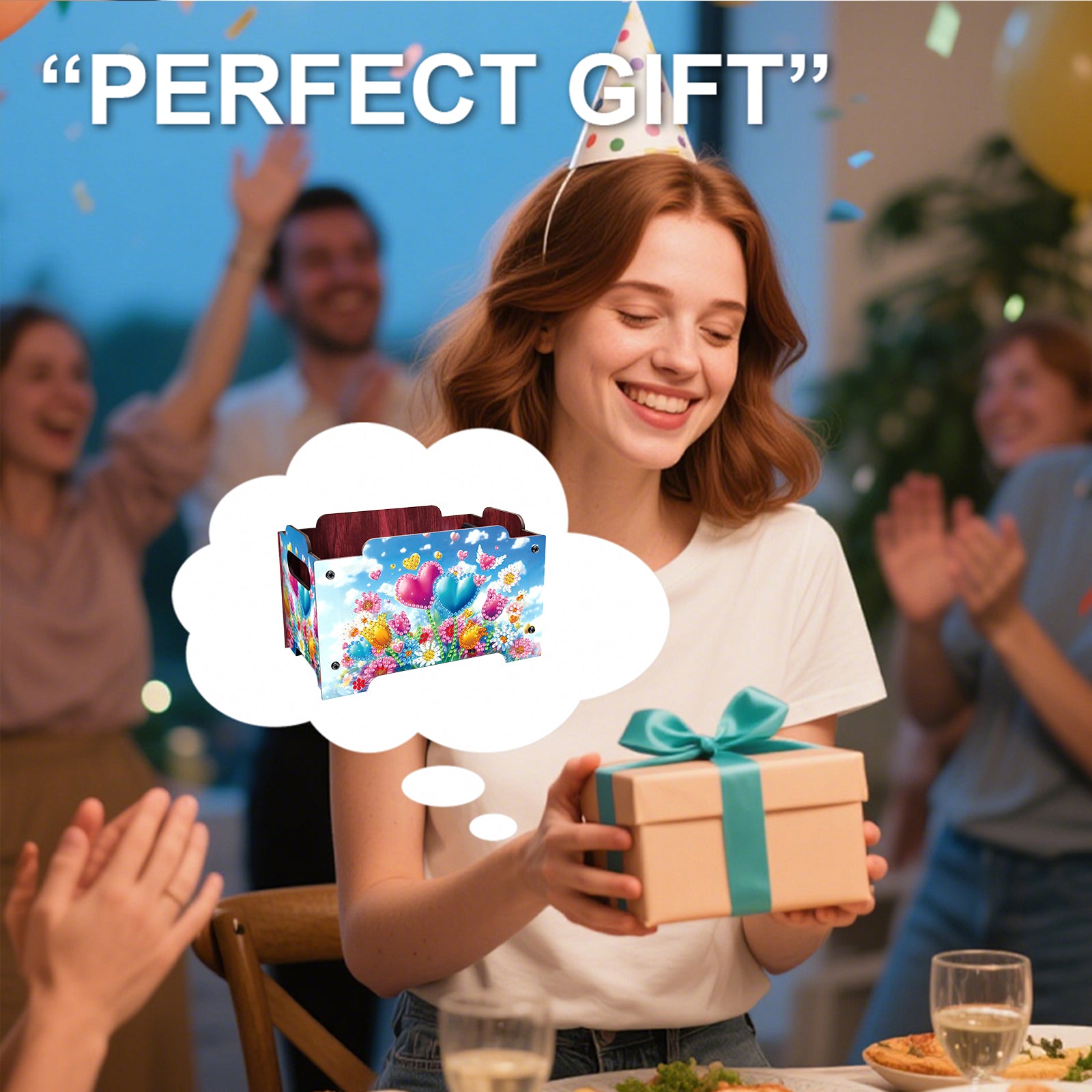 5D DIY Diamond Painting Decorative Storage Box Wood Storage Clutch (Balloon)