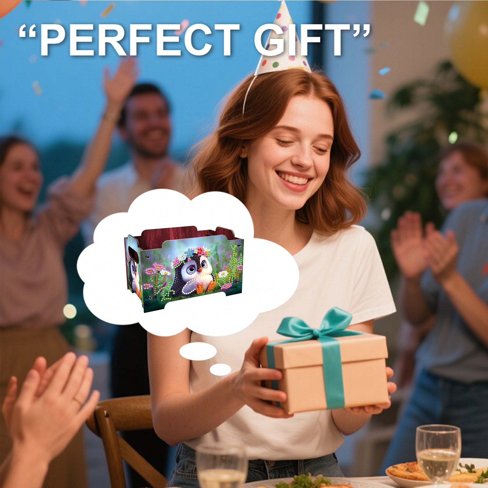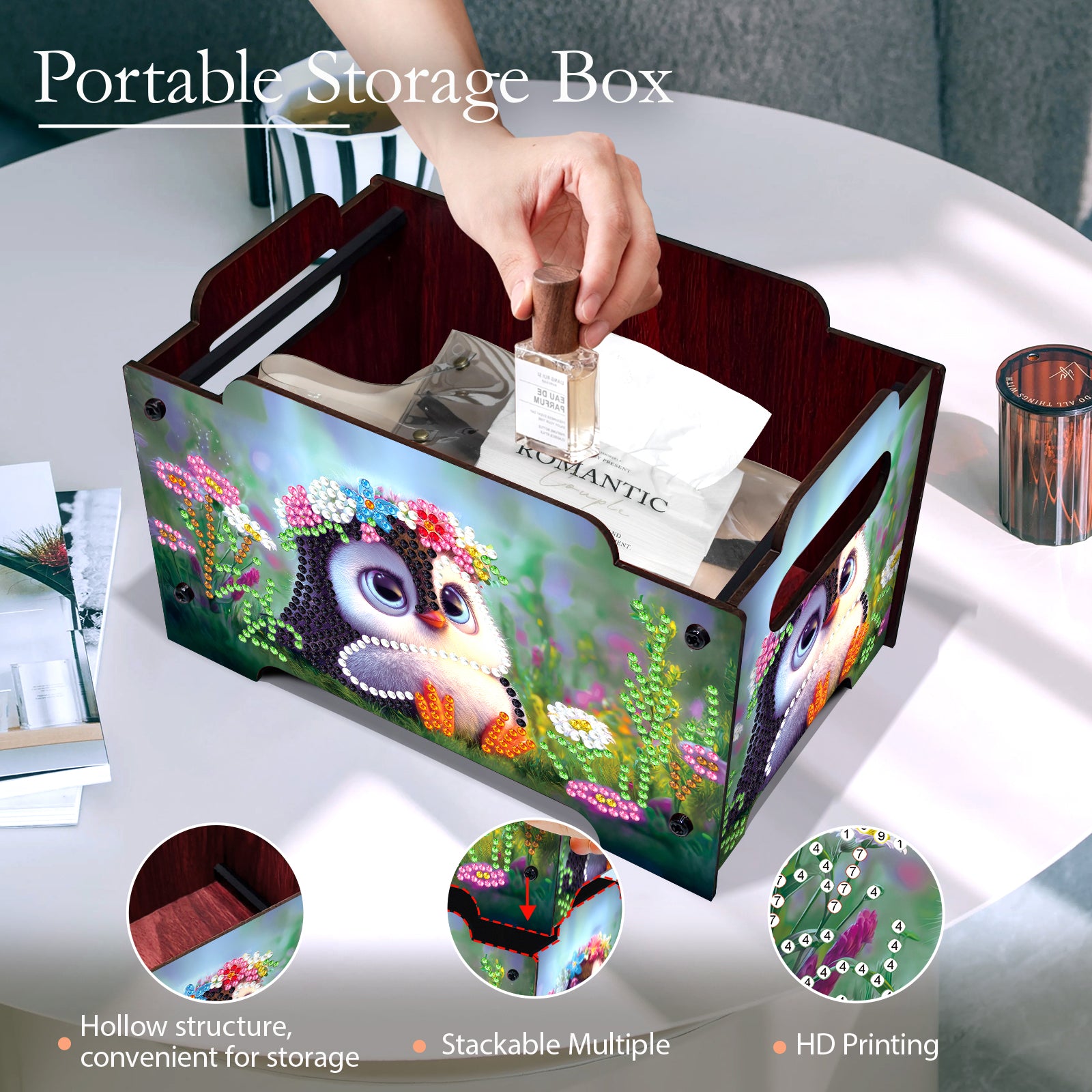 5D DIY Diamond Painting Decorative Storage Box Wood Storage Clutch (Penguin)