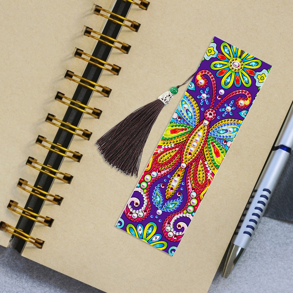 5D DIY Special Shaped Diamond Painting Leather Butterfly Tassel Book Marks