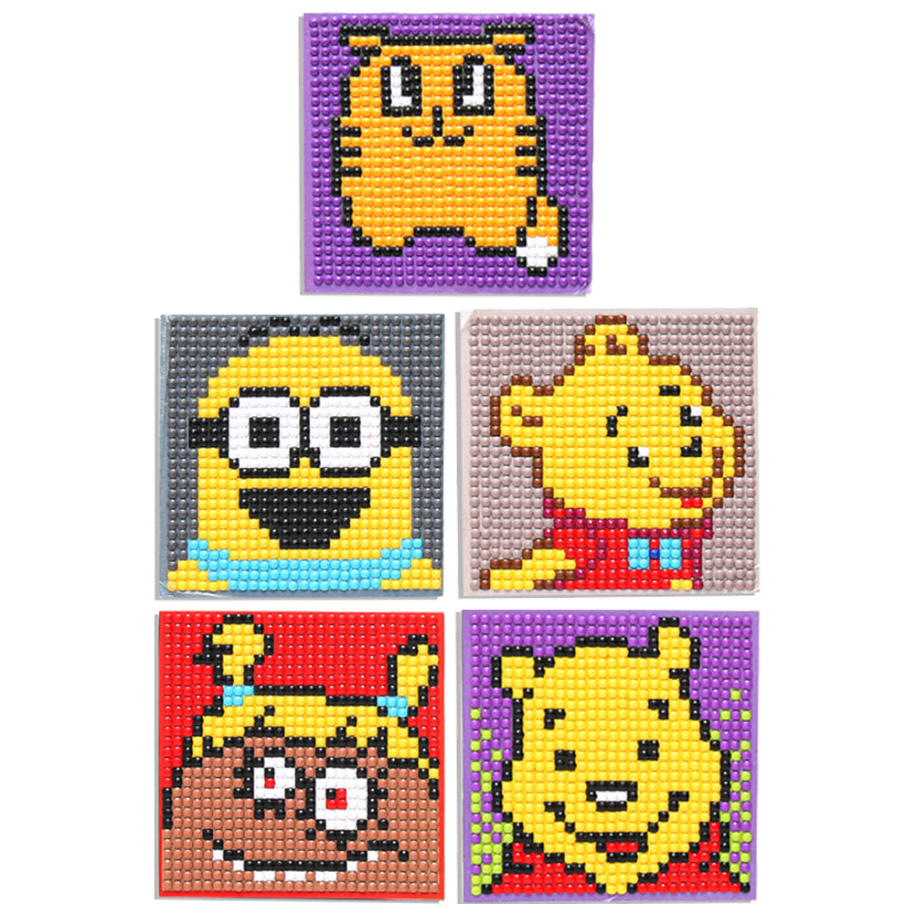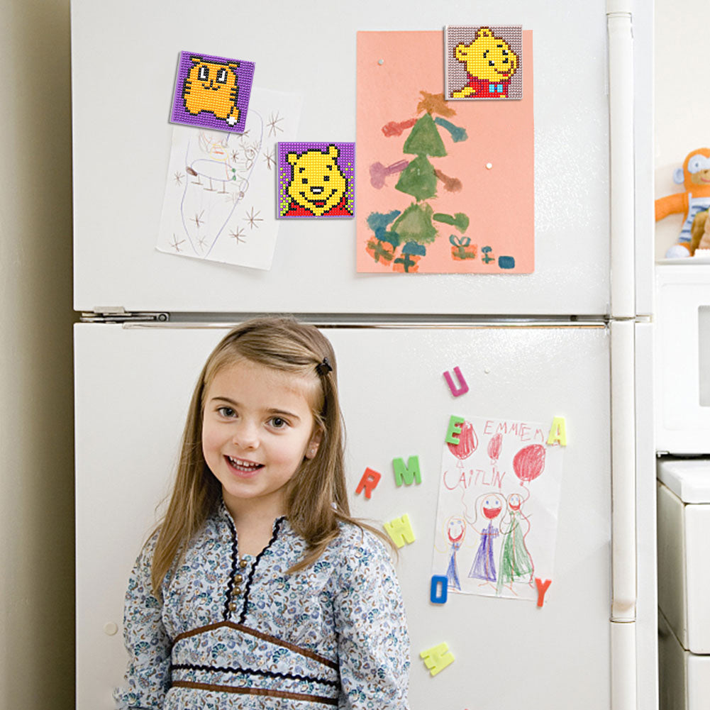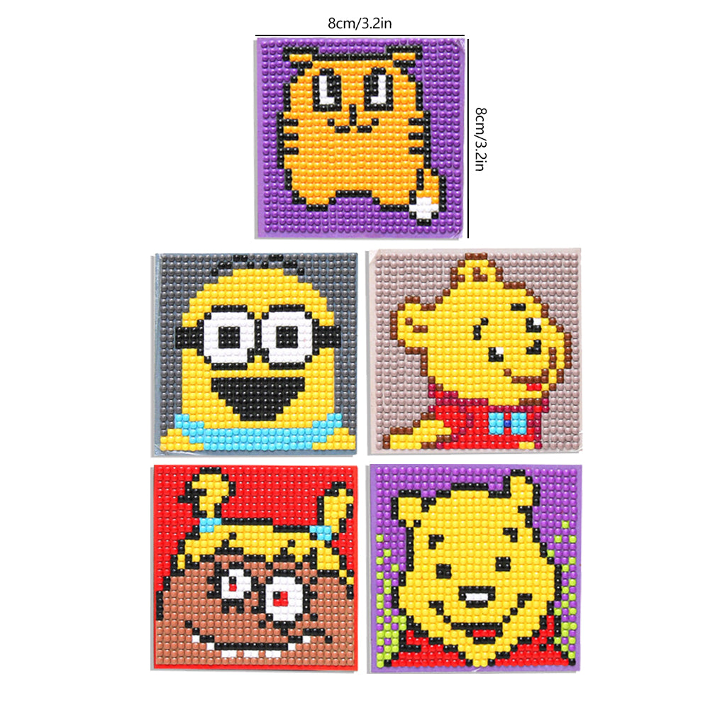 5ocs Diamond Fridge Magnet Sticker Cartoon DIY Round Full Drill for Home Kitchen