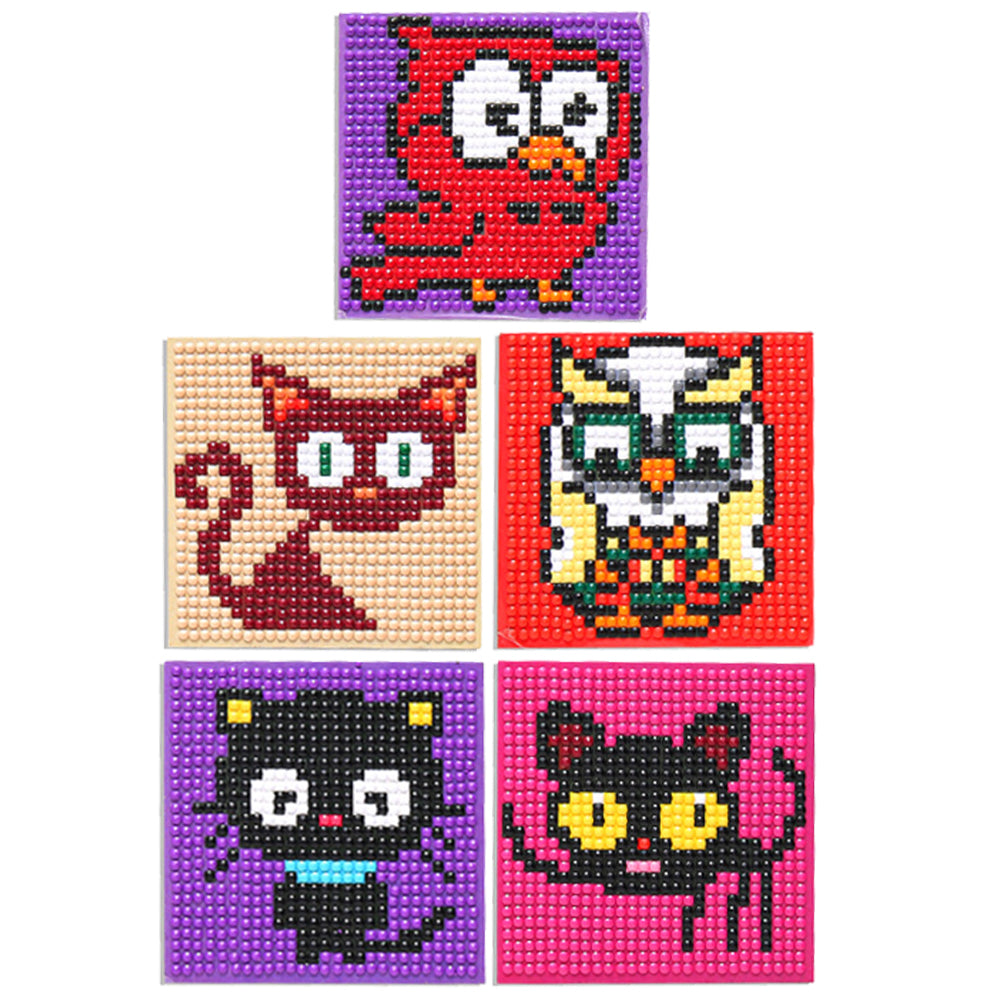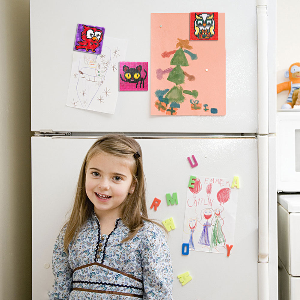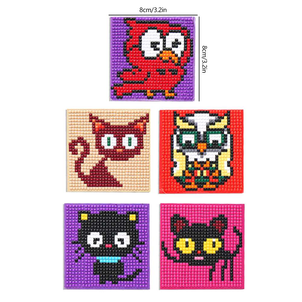 5ocs Diamond Fridge Magnet Sticker Cartoon DIY Round Full Drill for Home Kitchen