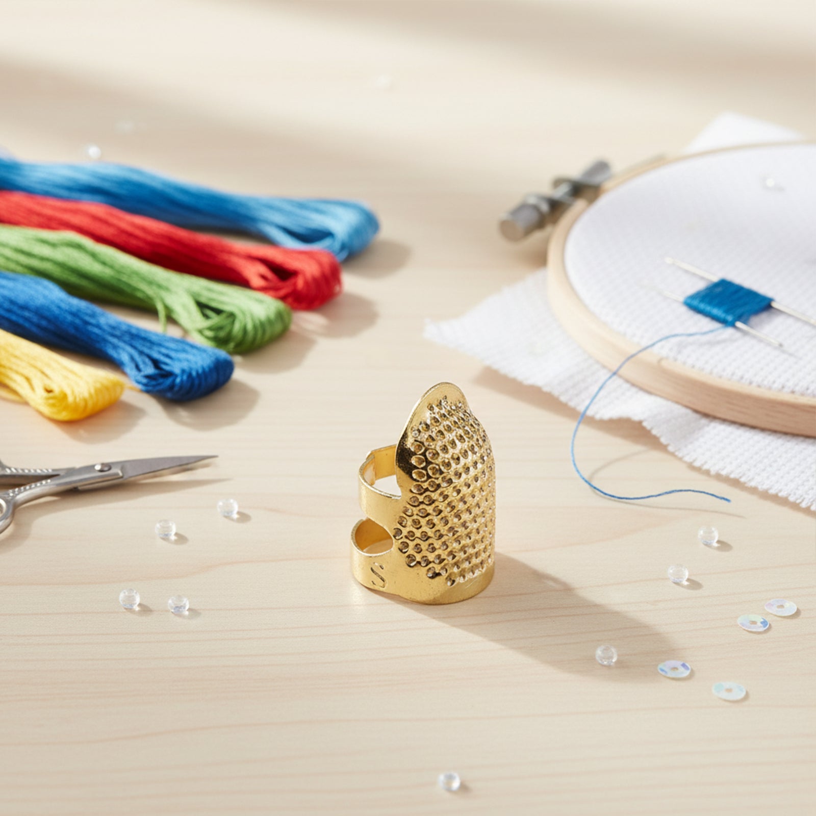 5Pcs Cross-Stitch Tools Retro Adjustable Thimble Hand Sewing Thimble (Gold M)