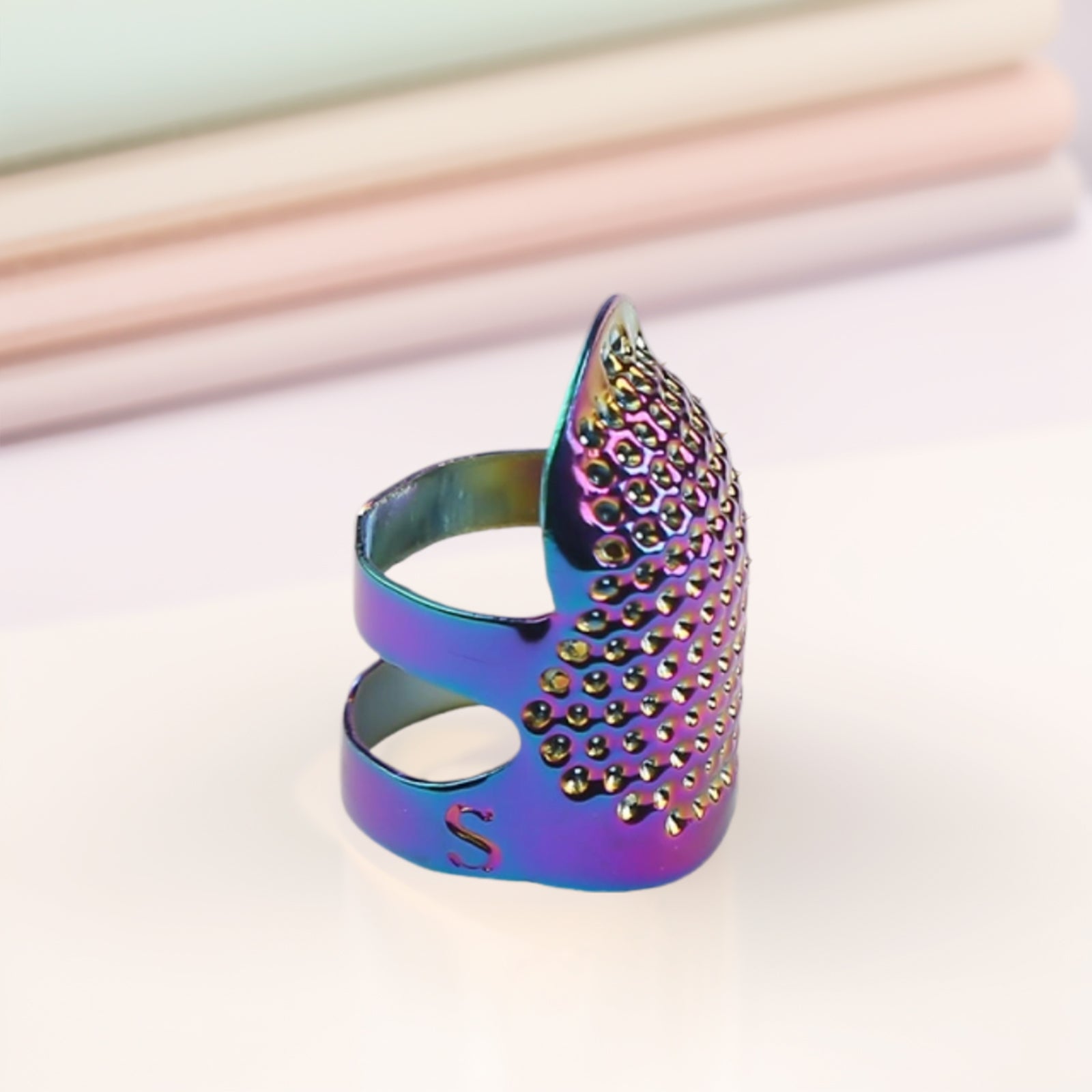 5Pcs Cross-Stitch Tools Retro Adjustable Thimble Sewing Ring (Vibrant Colors S)