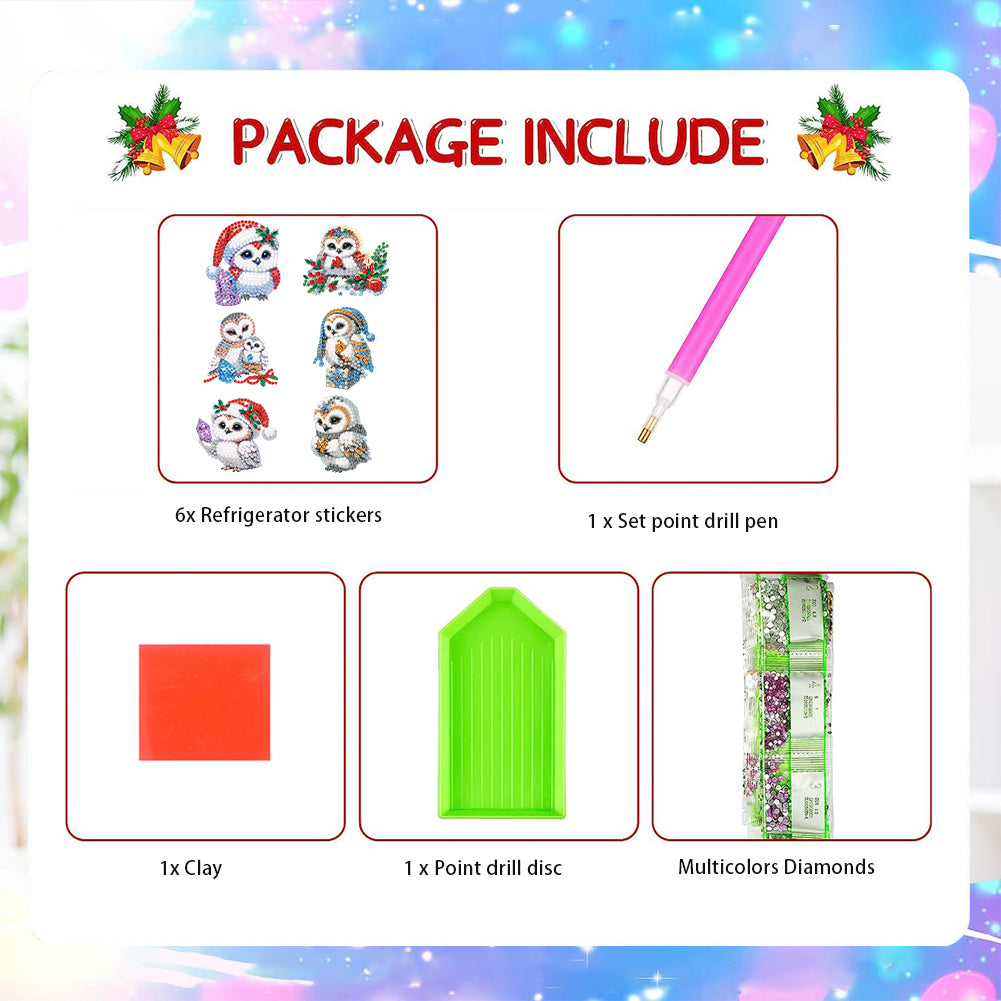 6Pcs Acrylic Christmas Owl Diamond Painting Art Fridge Magnet for Adults
