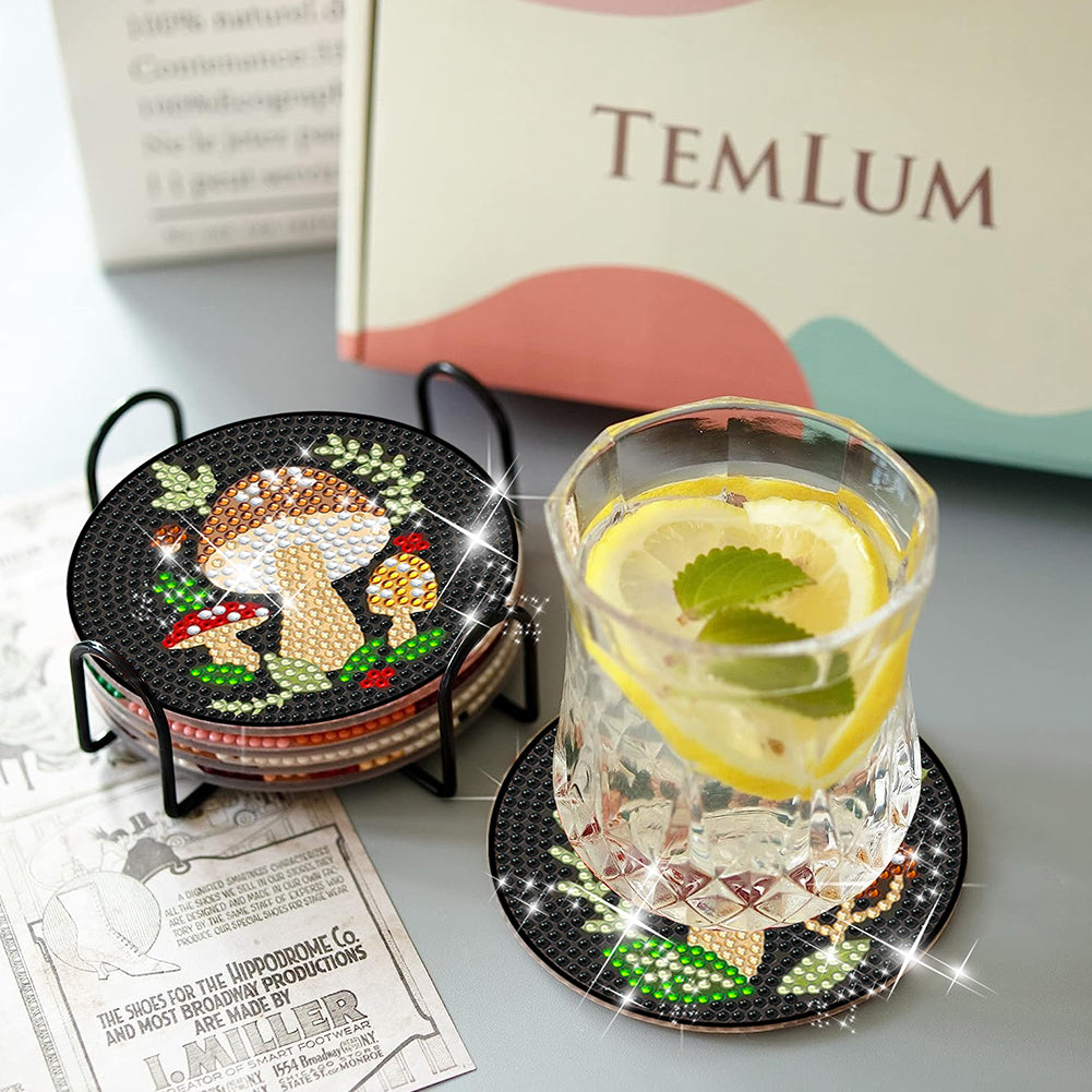 6Pcs Diamond Art Coaster Diamond Art Painting Coaster Kit with Holder (Mushroom)
