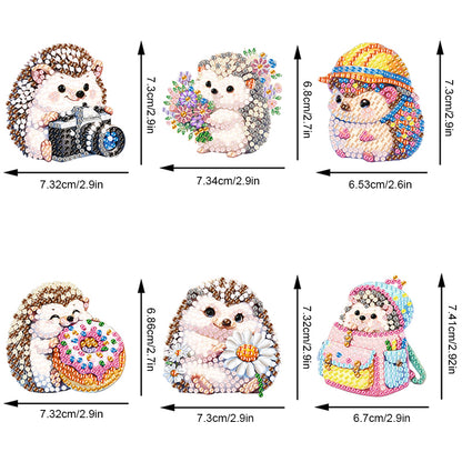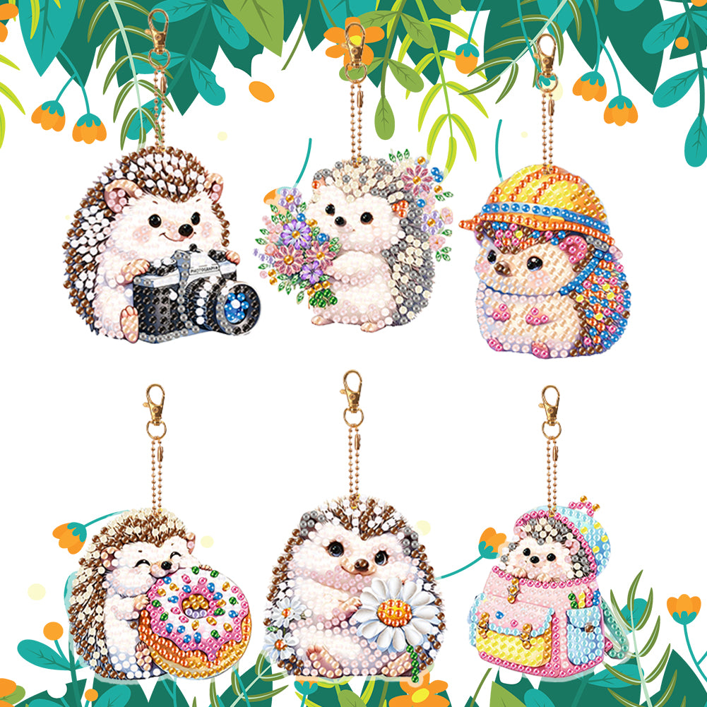 6Pcs Diamond Art Keyring Double Sided Diamond Painting Keychain (Hedgehog)