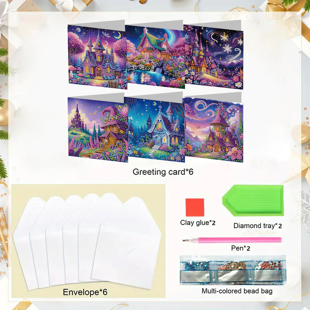 6pcs Diamond Painting Greeting Cards Handmade DIY Diamond Art Cards for Adults