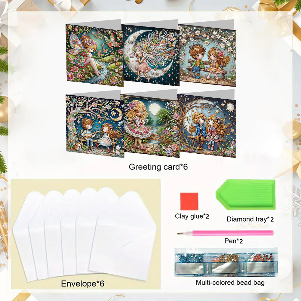 6pcs Diamond Painting Greeting Cards Handmade DIY Diamond Art Cards for Adults