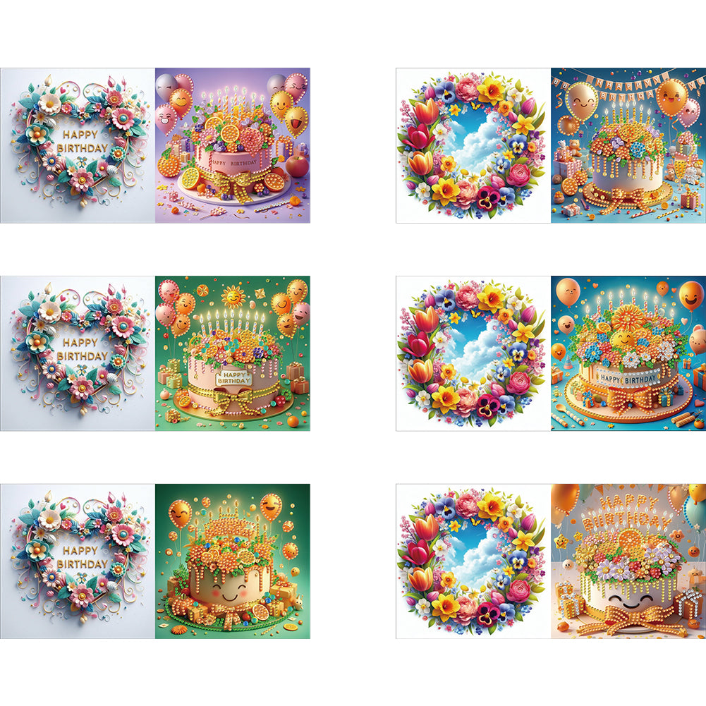 6PCS DIY Diamond Art Greeting Cards Birthday Theme Congratulations Cards & Gifts