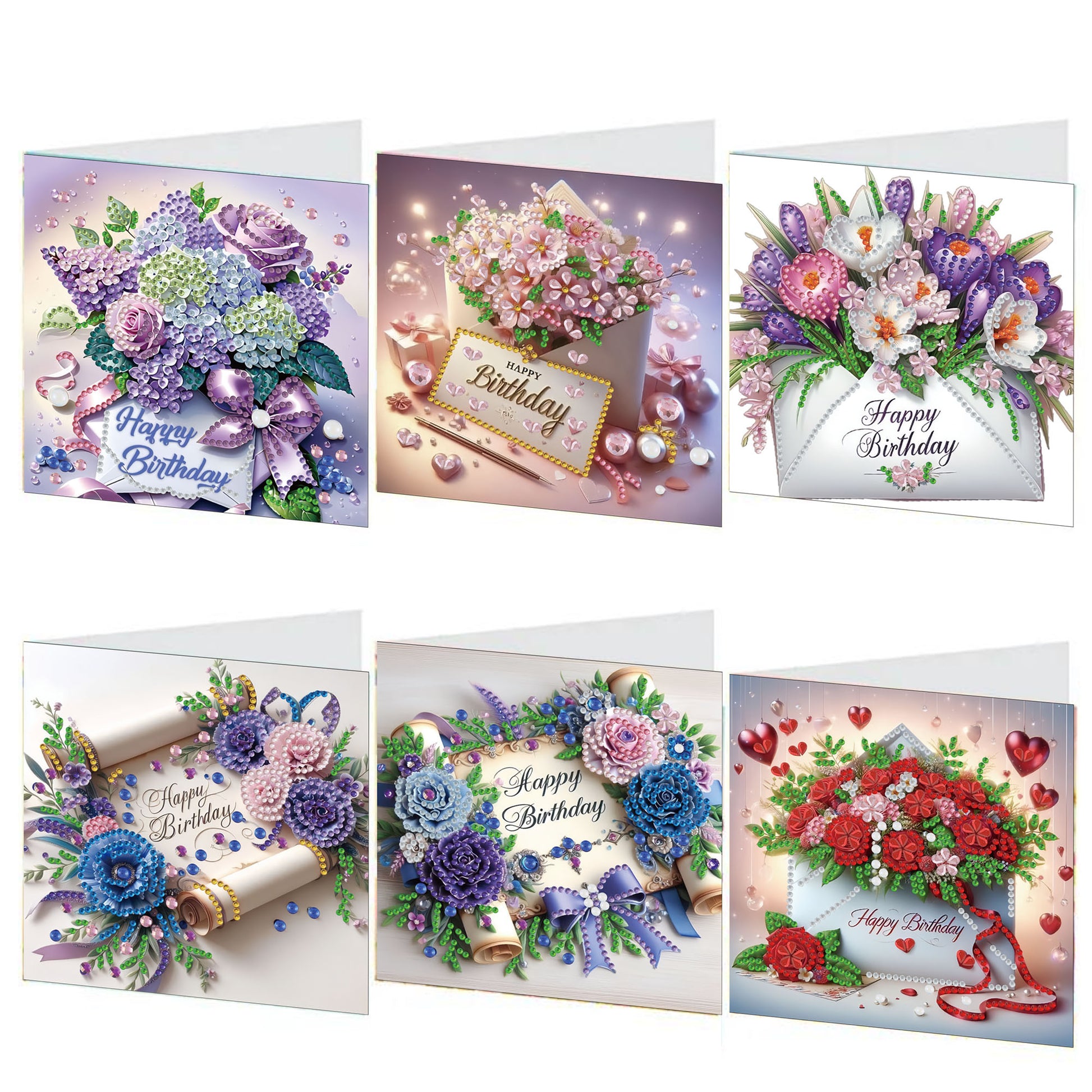 6PCS DIY Diamond Art Greeting Cards Birthday Theme Congratulations Cards & Gifts