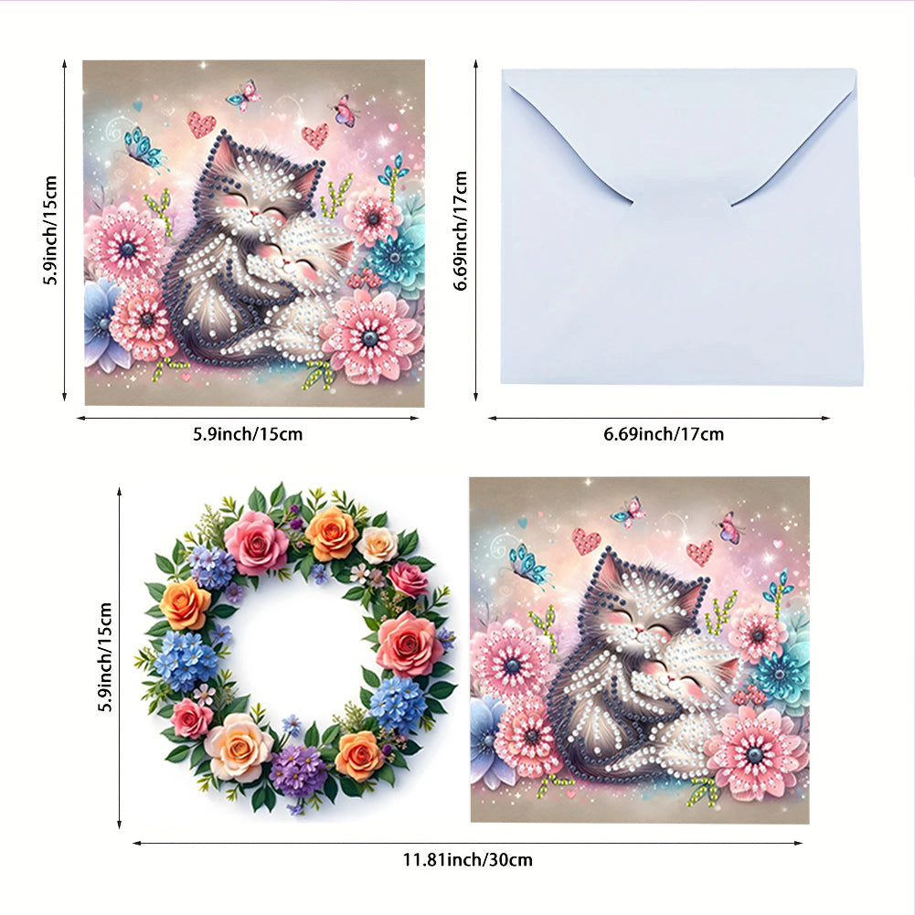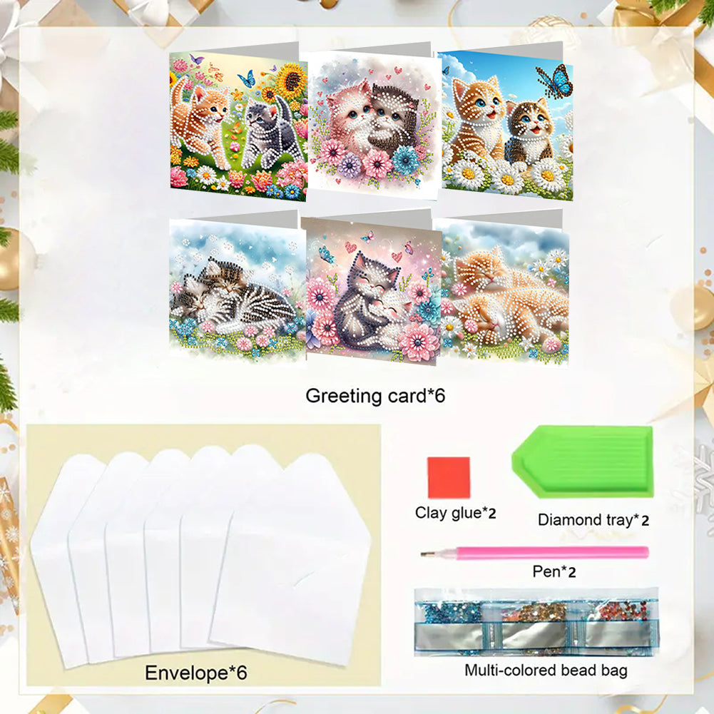 6PCS DIY Diamond Art Greeting Cards Cat Designs Congratulations Cards & Gifts