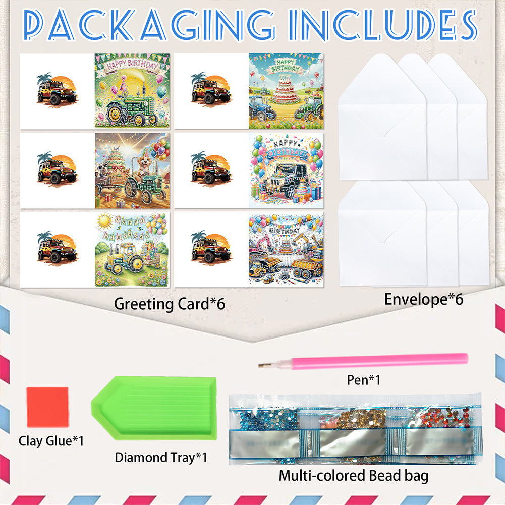 6PCS DIY Diamond Art Greeting Cards Congratulations Cards & Gifts (Birthday)