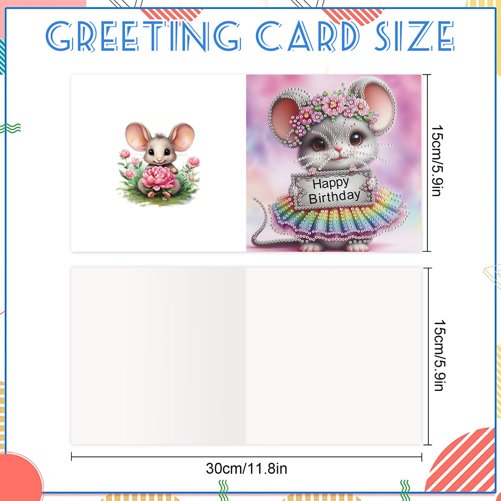 6PCS DIY Diamond Art Greeting Cards Congratulations Cards & Gifts (Mouse)