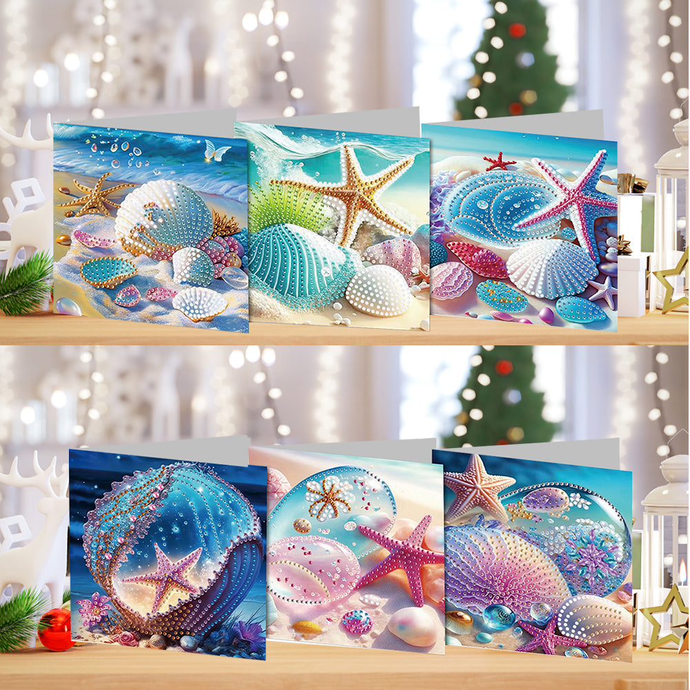 6PCS DIY Diamond Art Greeting Cards Ocean Seashell Congratulations Cards & Gifts
