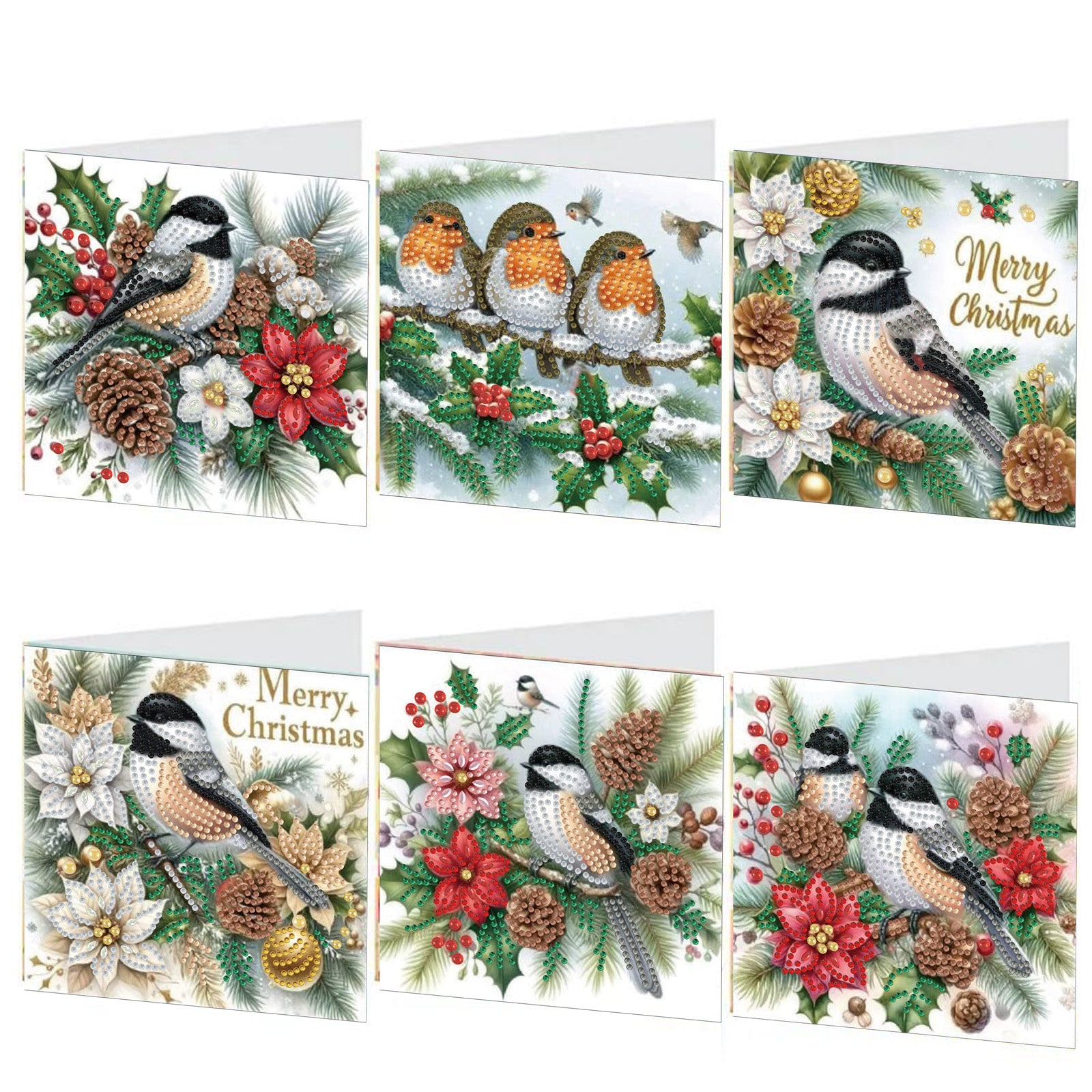 6PCS DIY Diamond Art Greeting Cards Xmas Designs for Festivals and Celebrations