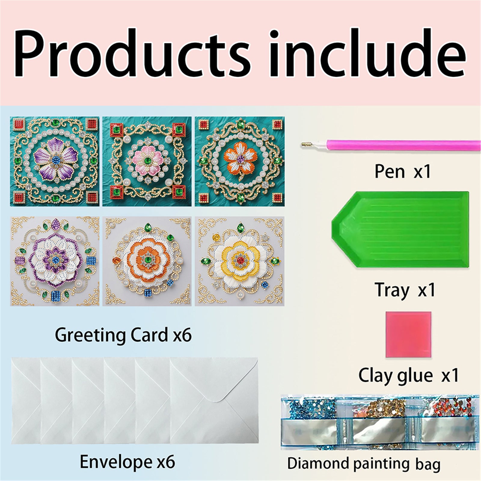 6pcs DIY Floral Pattern Diamond Art Greeting Cards for Festivals and Celebration
