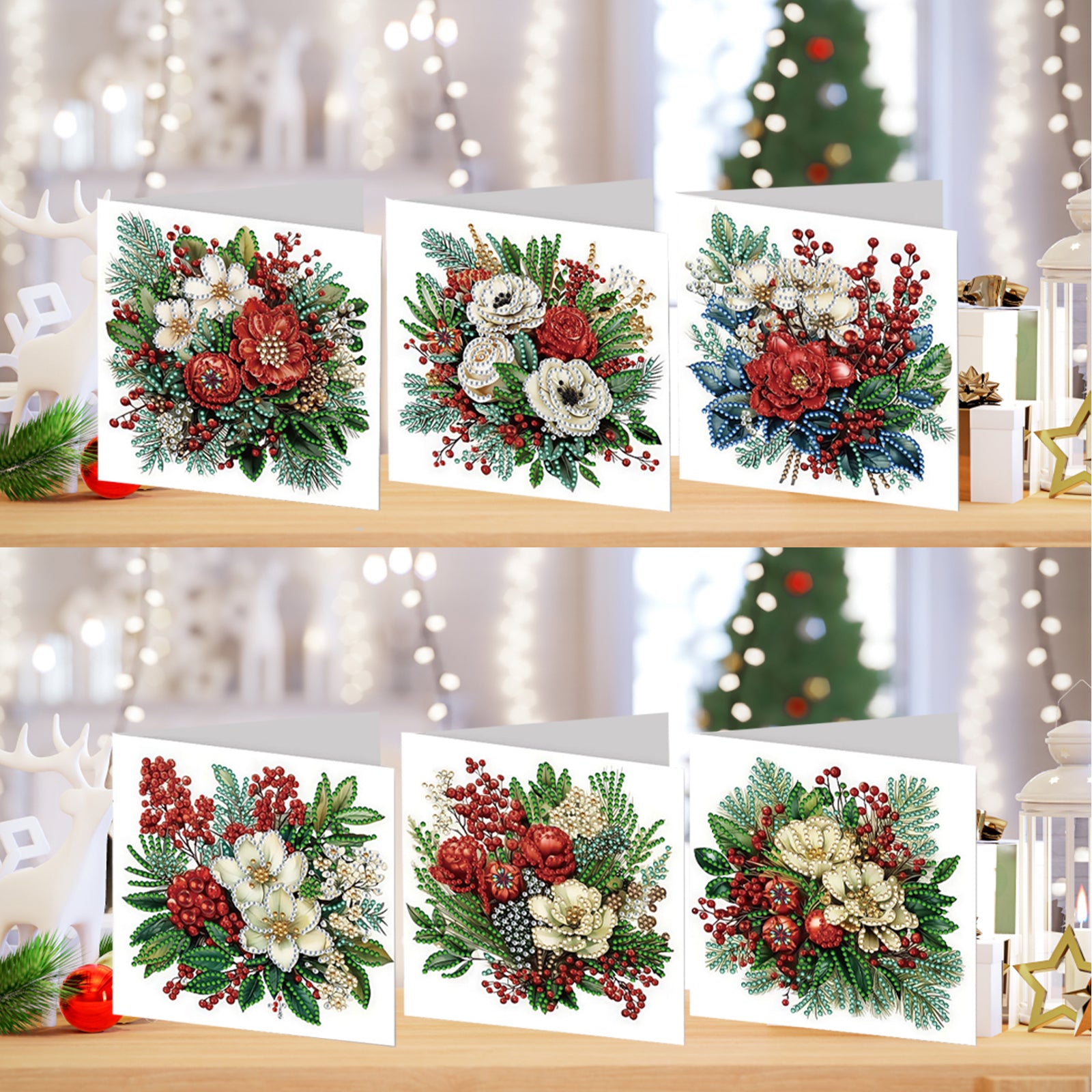 6pcs DIY Flowers Diamond Art Greeting Cards Thank You Cards and Holiday Blessing