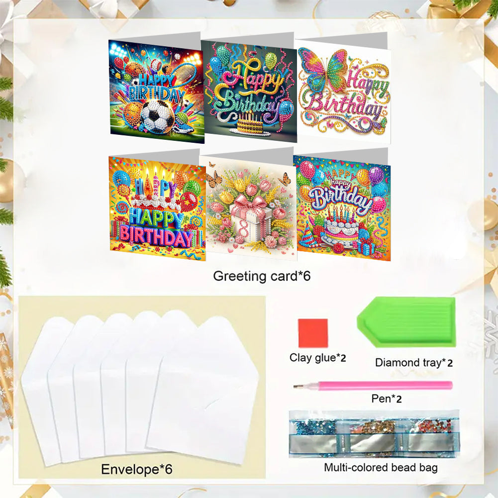6PCS DIY Rhinestone Diamond Art Mosaic Postcards for Festivals and Celebrations