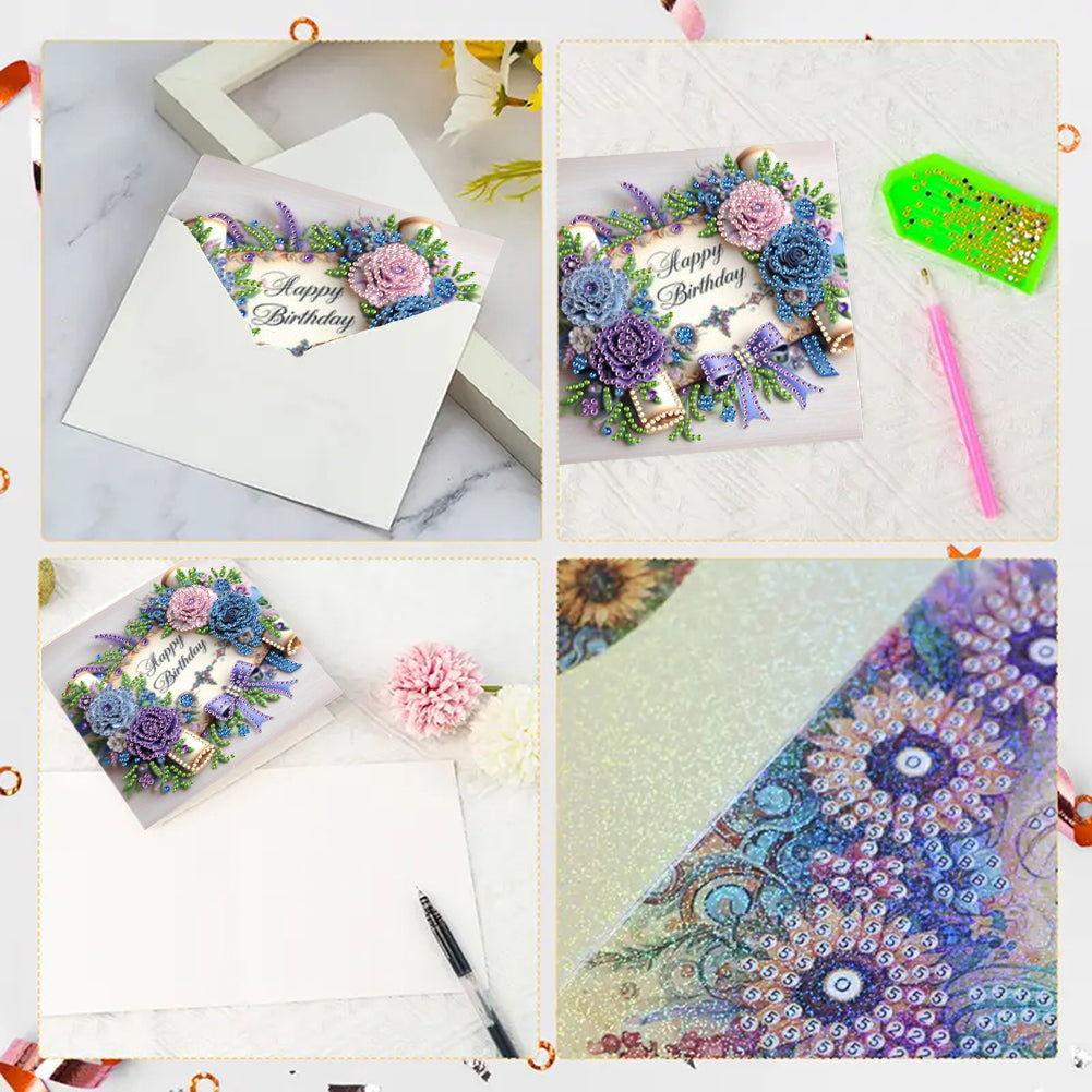 6PCS DIY Rhinestone Diamond Art Mosaic Postcards for Festivals and Celebrations