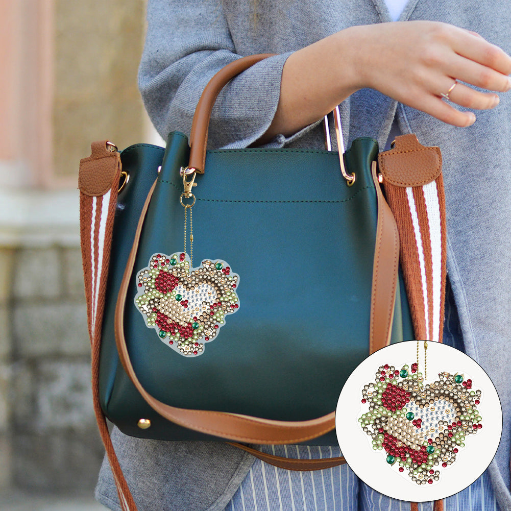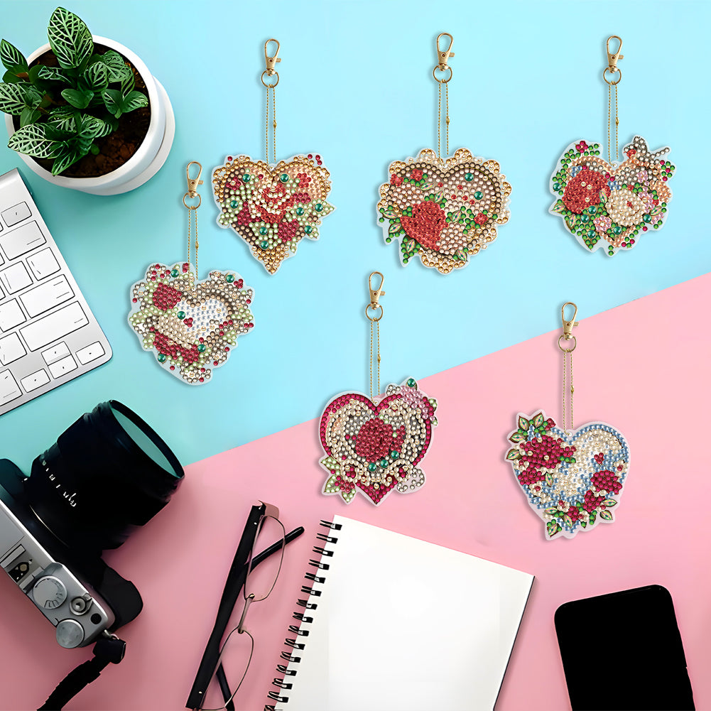 6PCS Double Sided Special Shape Diamond Painting Keychain (Flower Love)