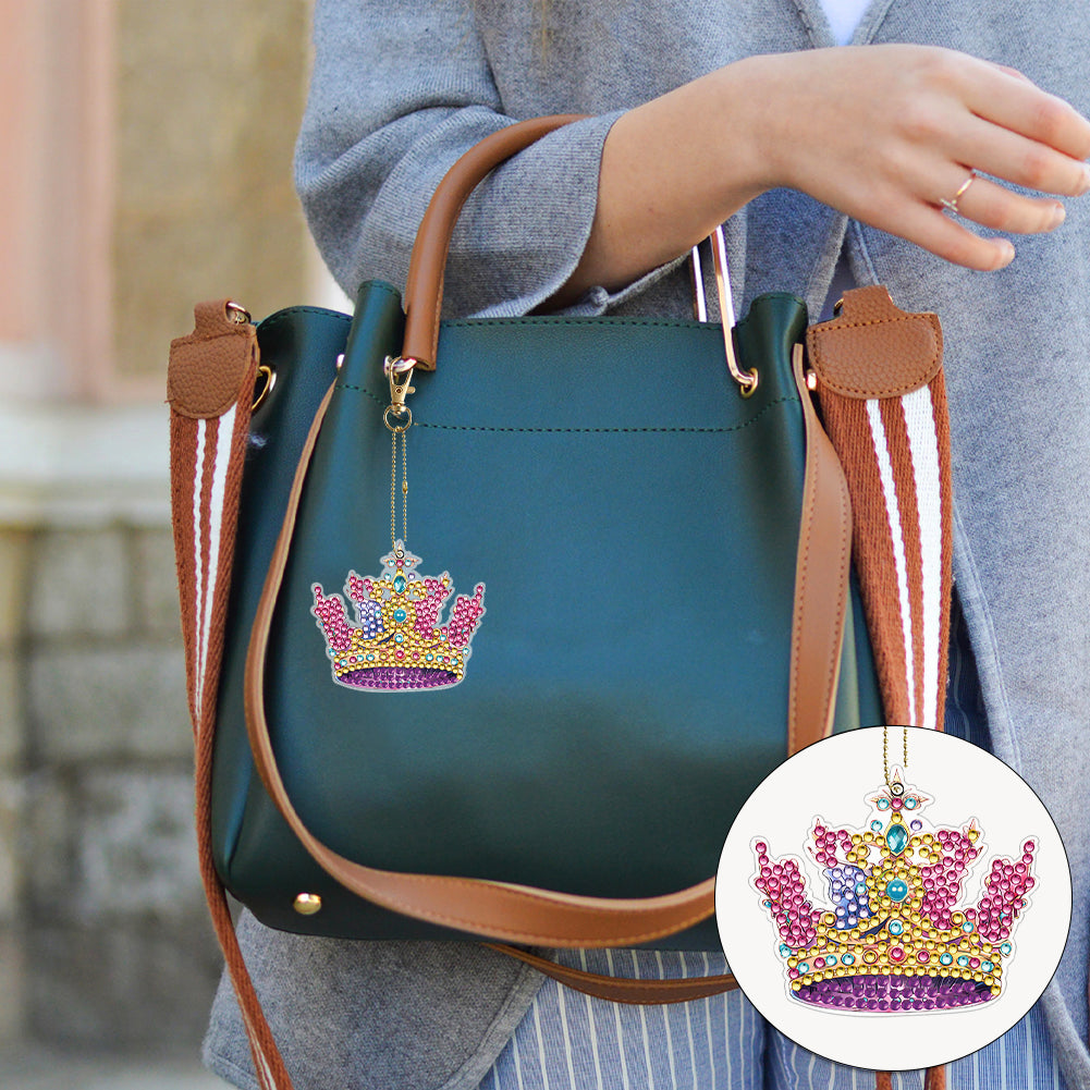 6PCS Double Sided Special Shape Diamond Painting Keychain for Beginners (Crown)