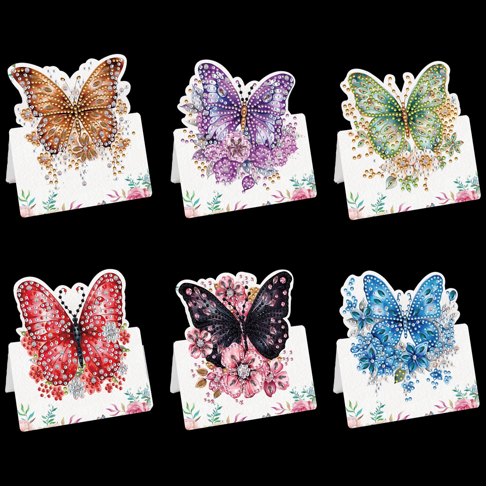 6pcs Flower Butterfly DIY Diamond Art Greeting Cards with Envelopes for Adults