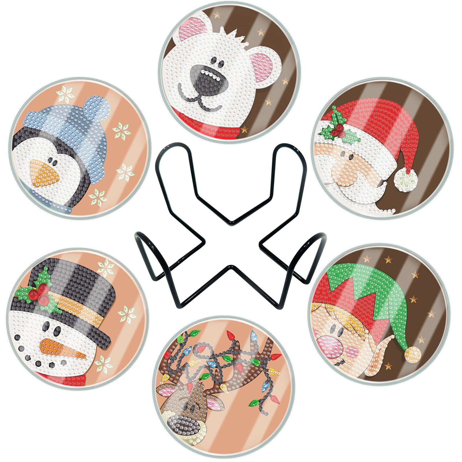 6pcs Set Xmas Theme DIY Diamond Painting Coasters Kit with Holder for Craft Gift