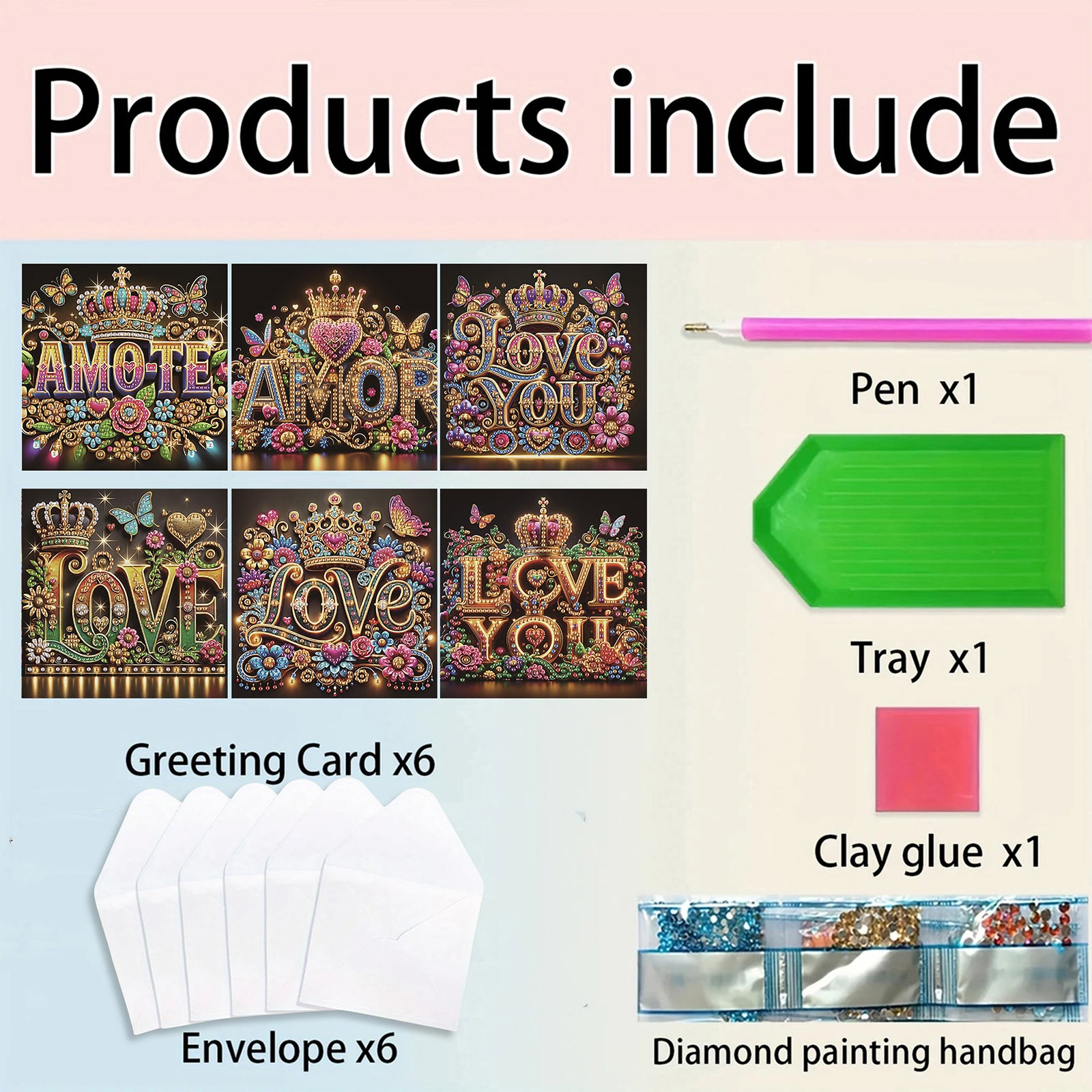1 set x diamond greeting card paper + envelopes (6 greeting cards + 6 envelopes)