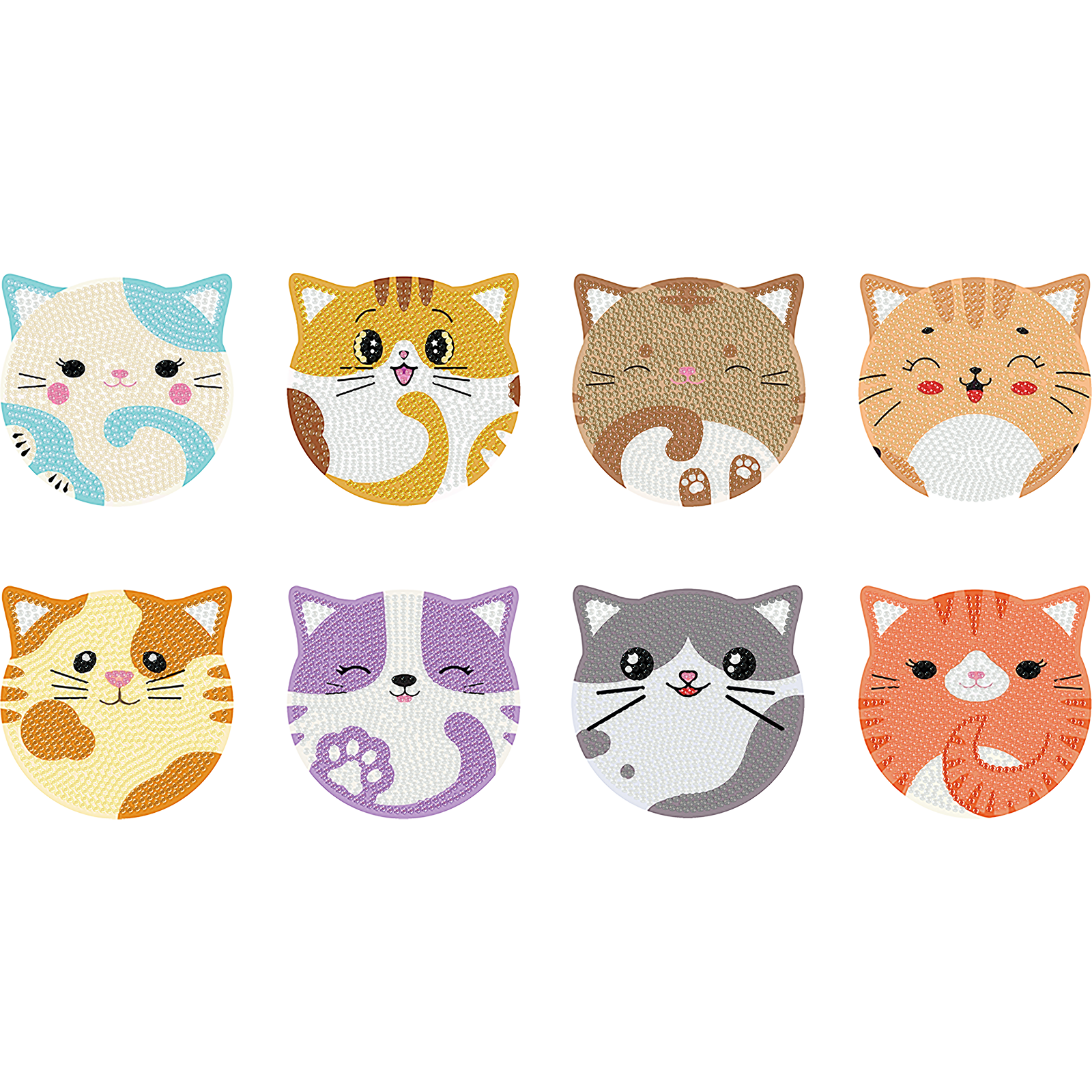 8pcs Cat Wooden DIY Coaster Diamond Art Kits with Holder No-Slip for Home Decor