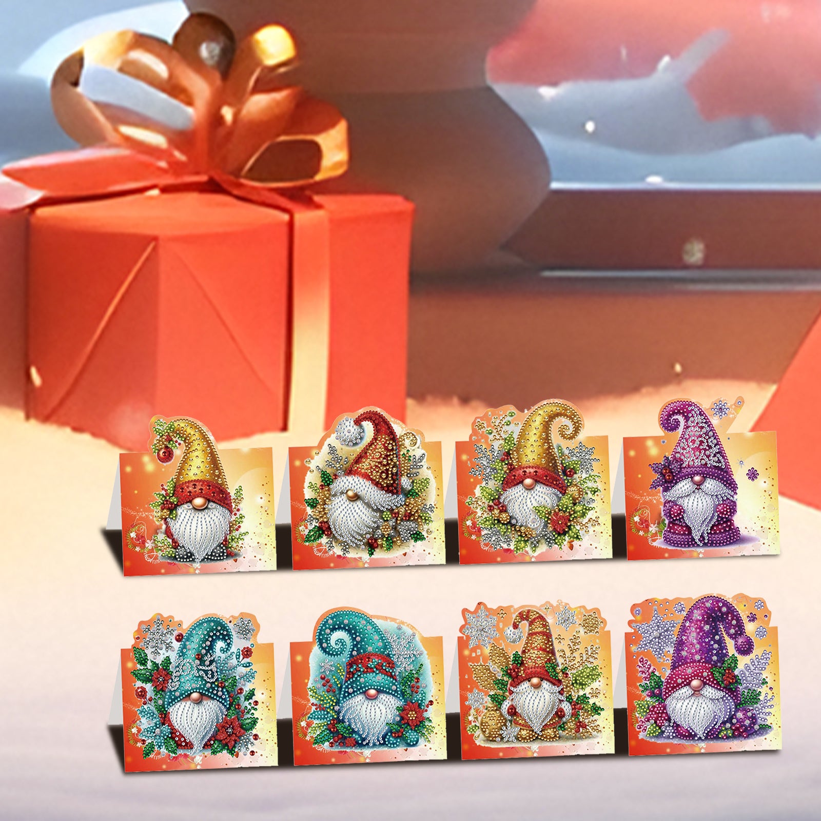 8PCS DIY Diamond Art Greeting Cards Xmas Congratulations Cards Gifts (Gnome)