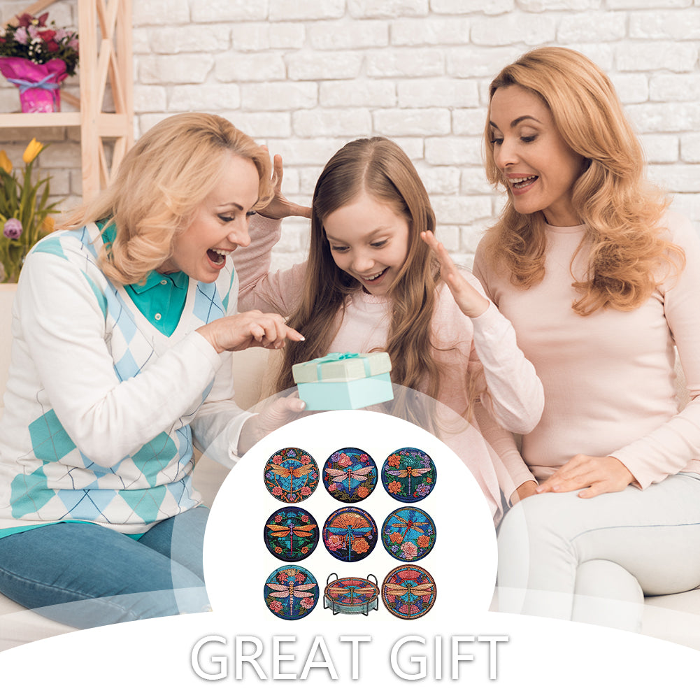 8pcs DIY Diamond Painting Coasters Kits Wooden Diamond Coaster Craft with Holder
