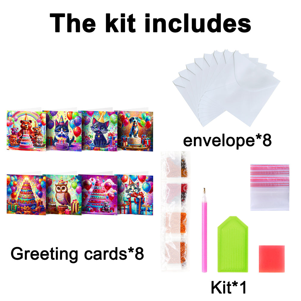 8Pcs Flower Envelope Rhinestone Painting Card Kit Diamond Painting Greeting Card
