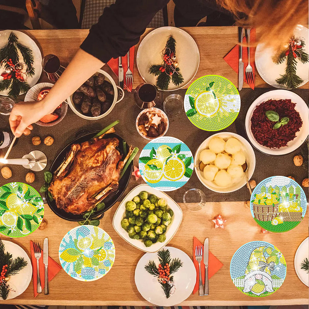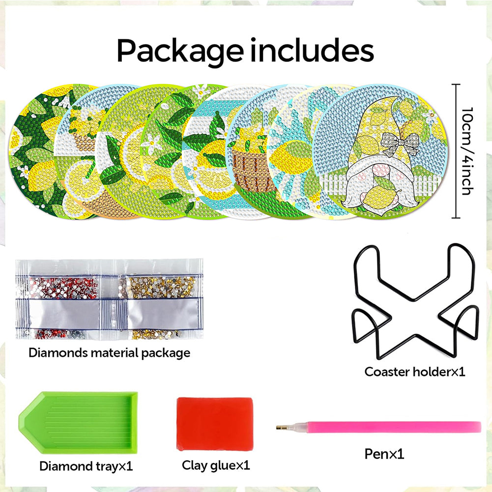 8Pcs Lemon Gnome Diamond Painting Coasters with Holder Animal for Party Decor