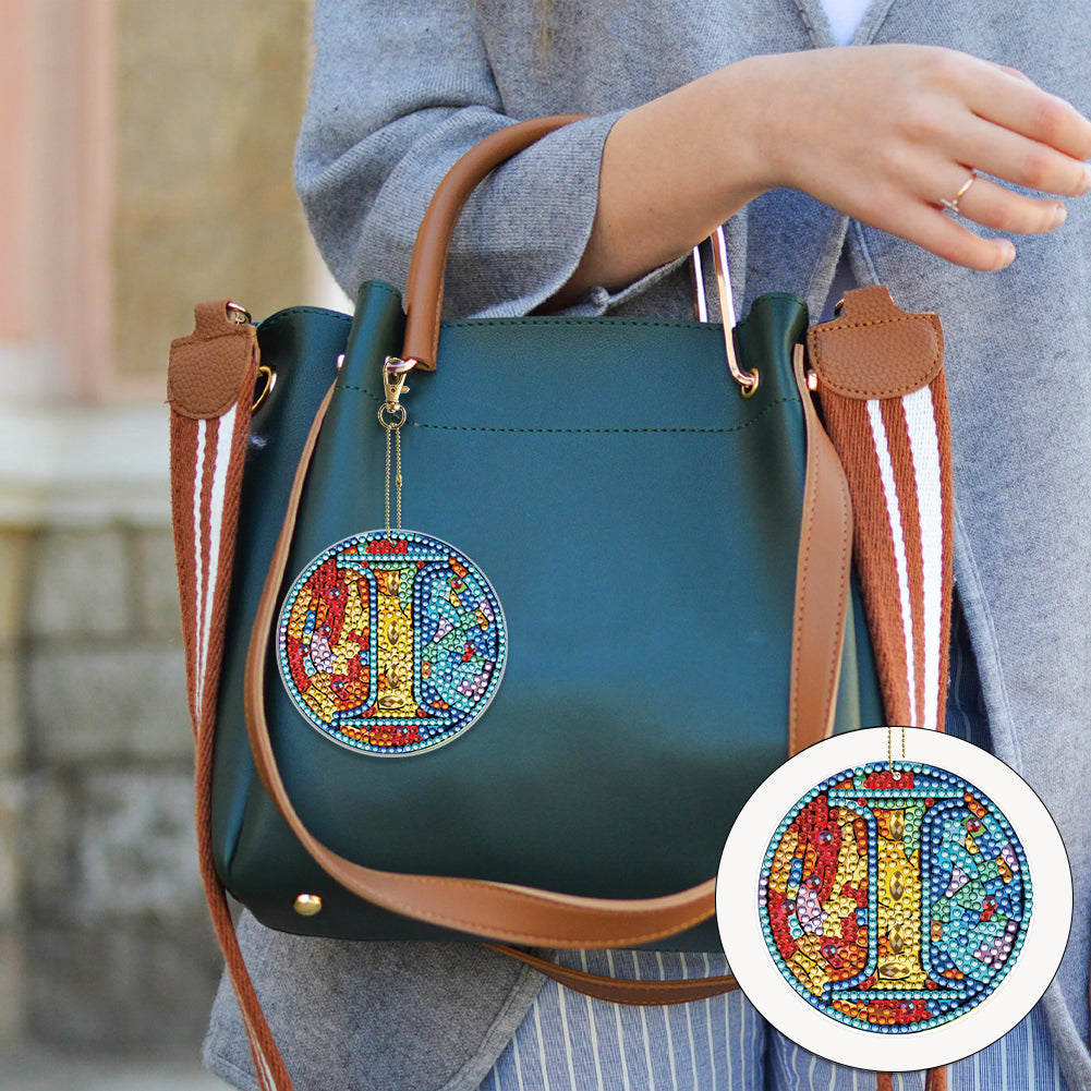 A-Z 26 Letters Double Sided Special Shape Diamond Painting Keychain Pendant (I)