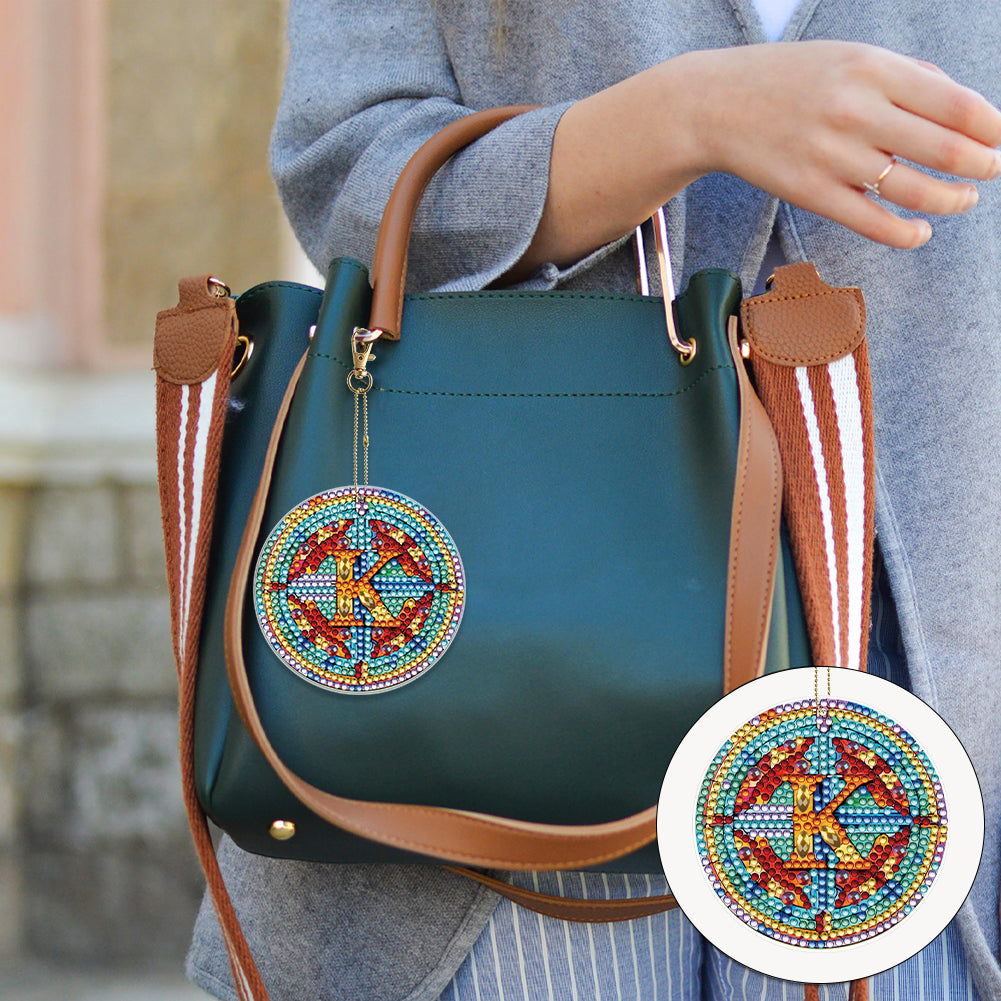 A-Z 26 Letters Double Sided Special Shape Diamond Painting Keychain Pendant (K)