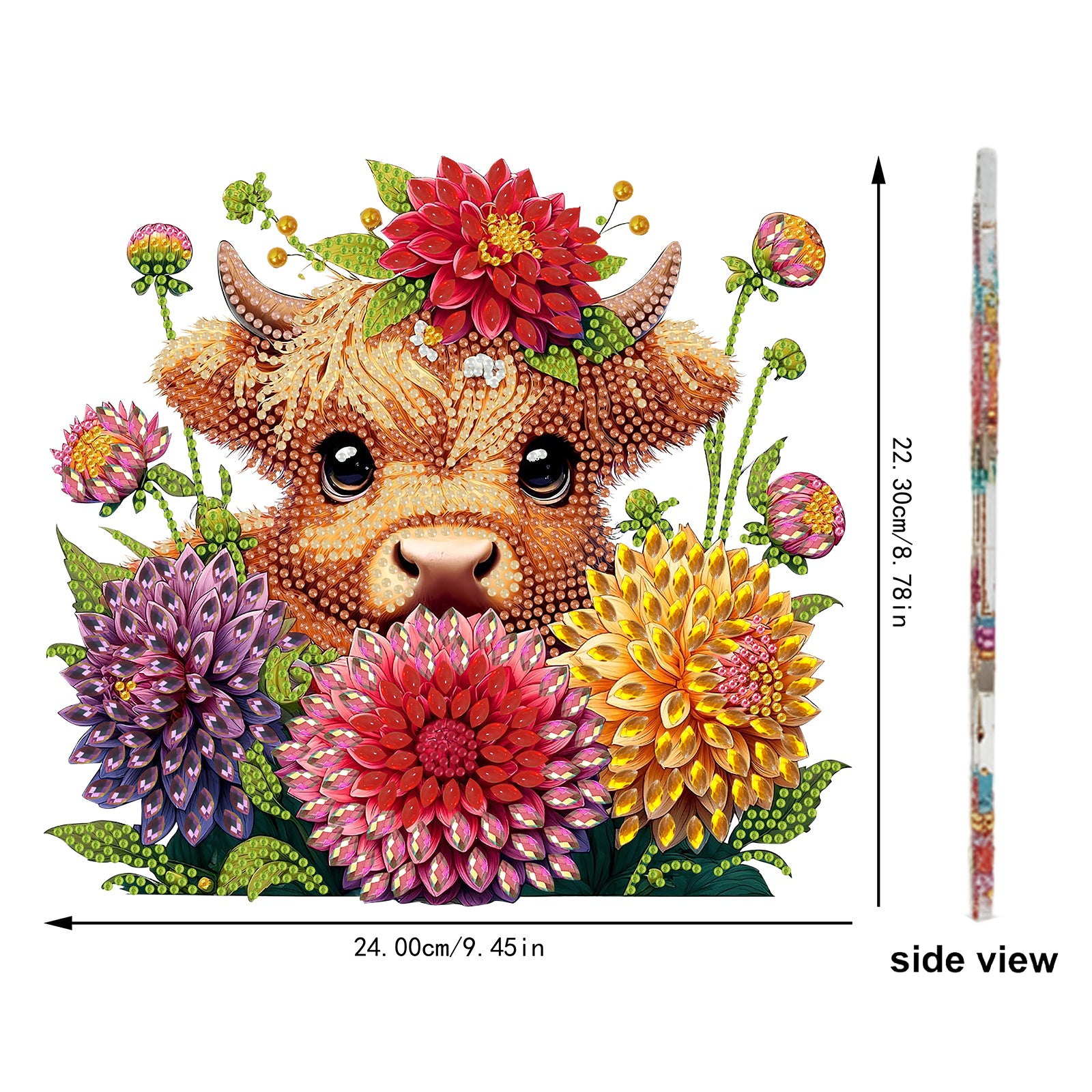 Acrylic 2D Flat cow and Flower DIY Table Top Diamond Painting Ornament Kits