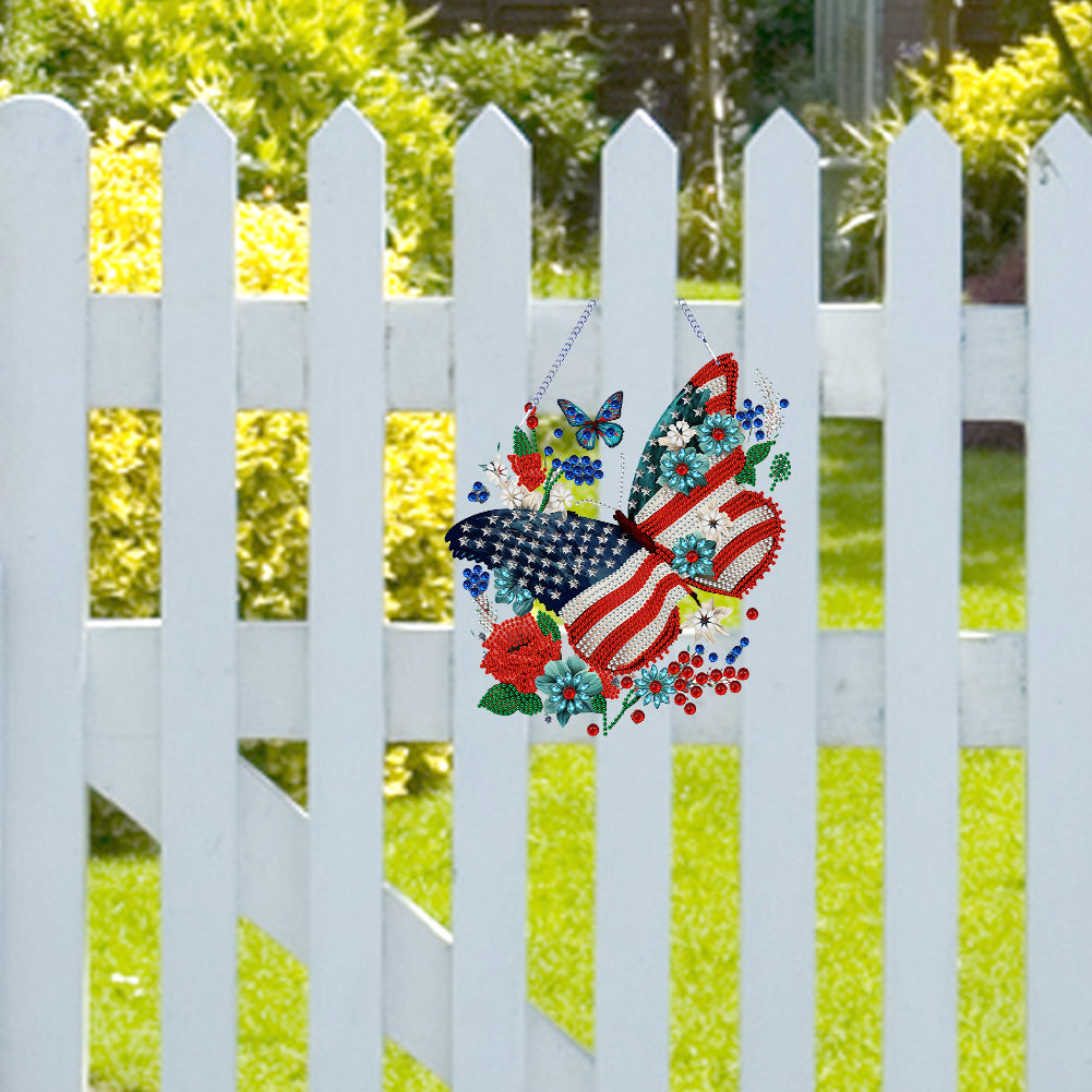Acrylic Independence Day Butterfly 5D DIY Diamond Painting Dots Pendant Decor