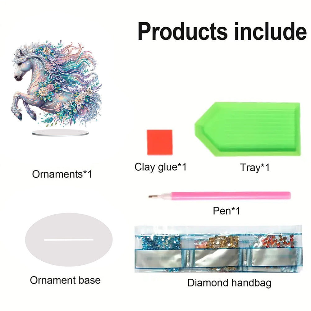Acrylic Special Shape White Horse Diamond Painting Desktop Ornaments for Decor