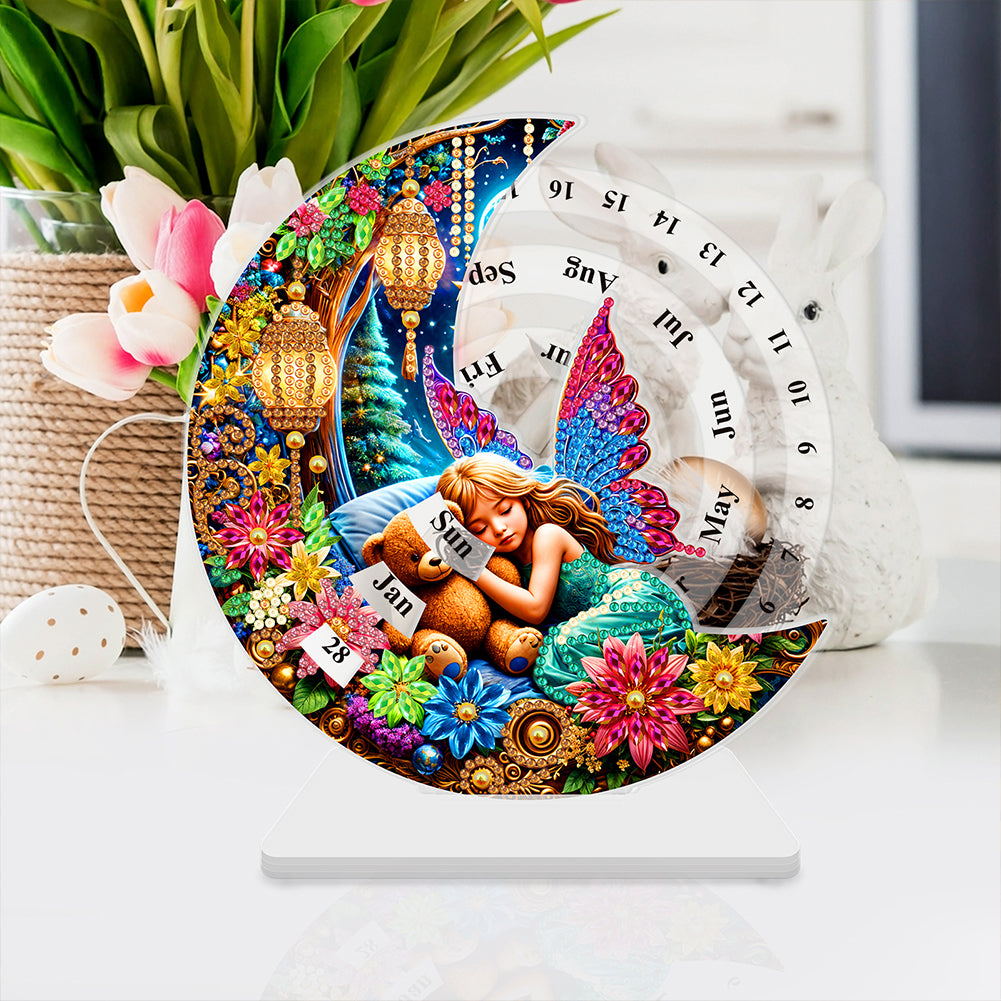 Acrylic Special Shaped Butterfly Girl Diamond Art Desktop Perpetual Calendar