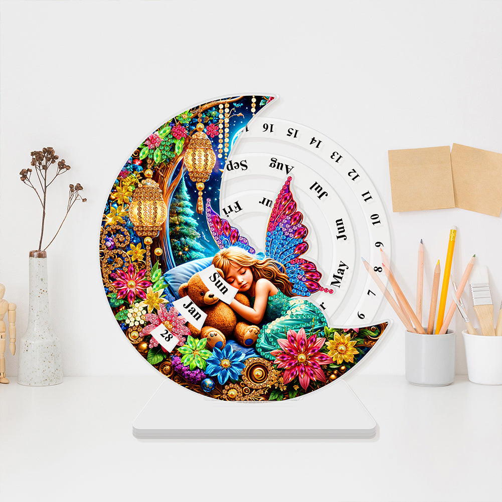 Acrylic Special Shaped Animals DIY Diamond Painting Moon Perpetual Calendar Diamond Art Desktop Perpetual Calendar for Beginners