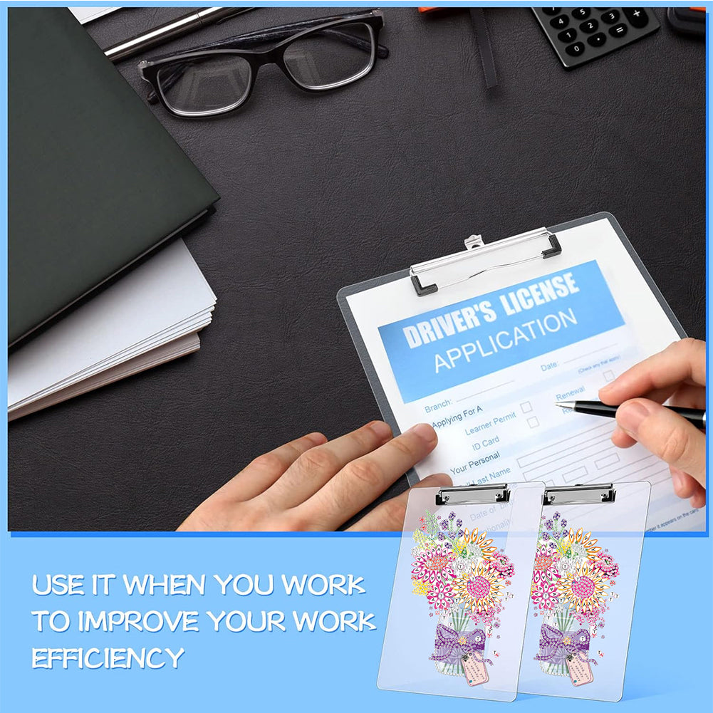 Acrylic Vase 5D DIY Diamond Painting File Folder Clipboard Office Stationary