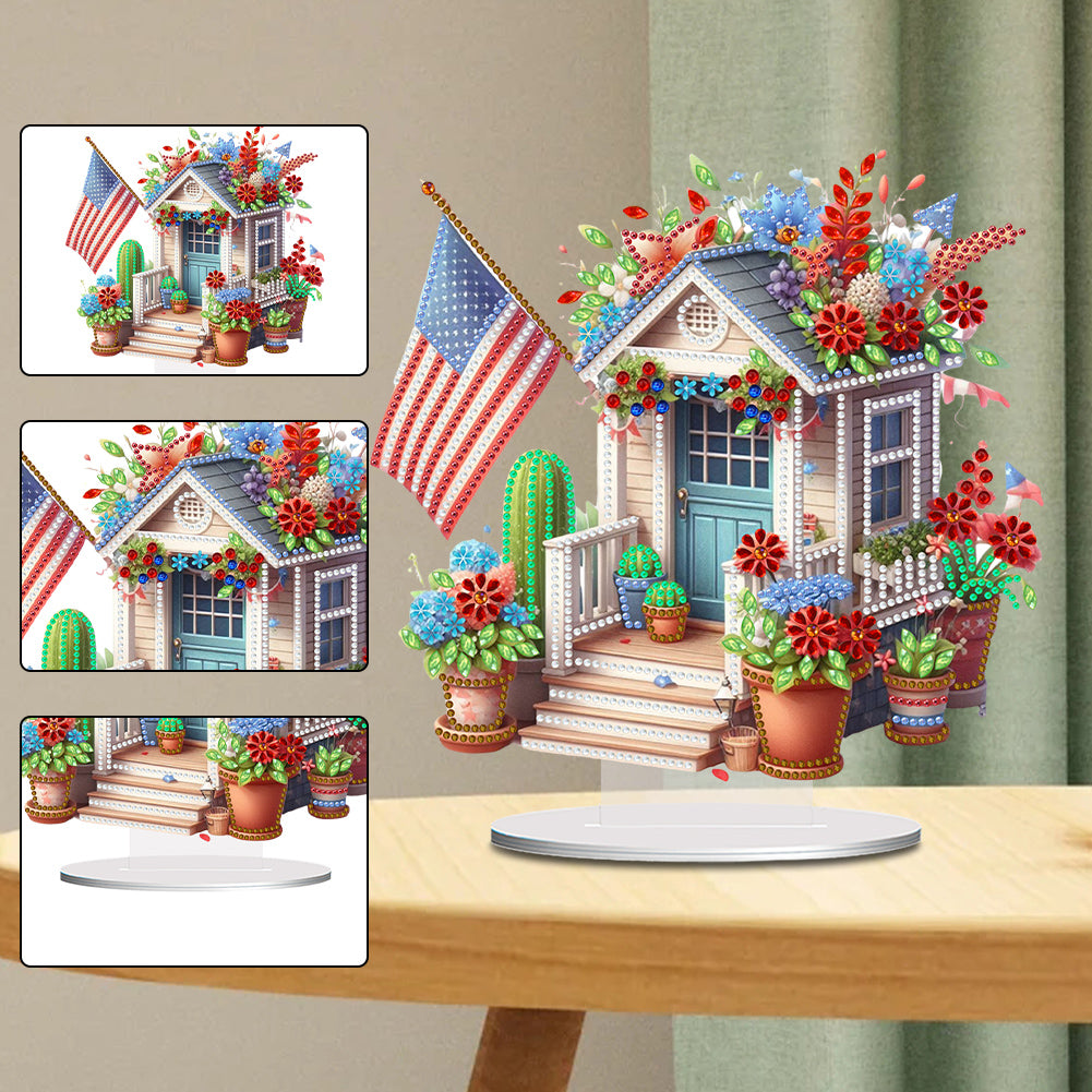American Flag Special Shape Diamond Painting Desktop Home Ornament (House 4)