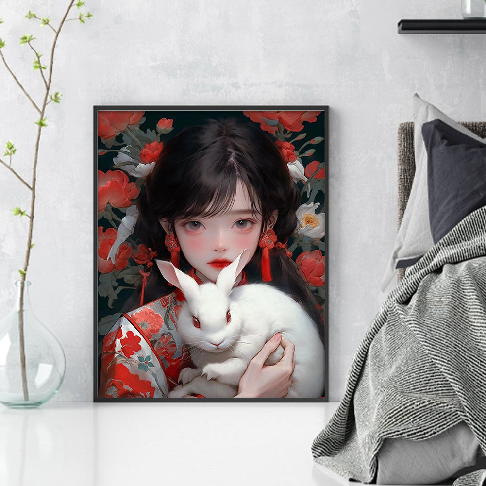Ancient Style Girl And White Rabbit - 11CT Stamped Cross Stitch 40*50CM