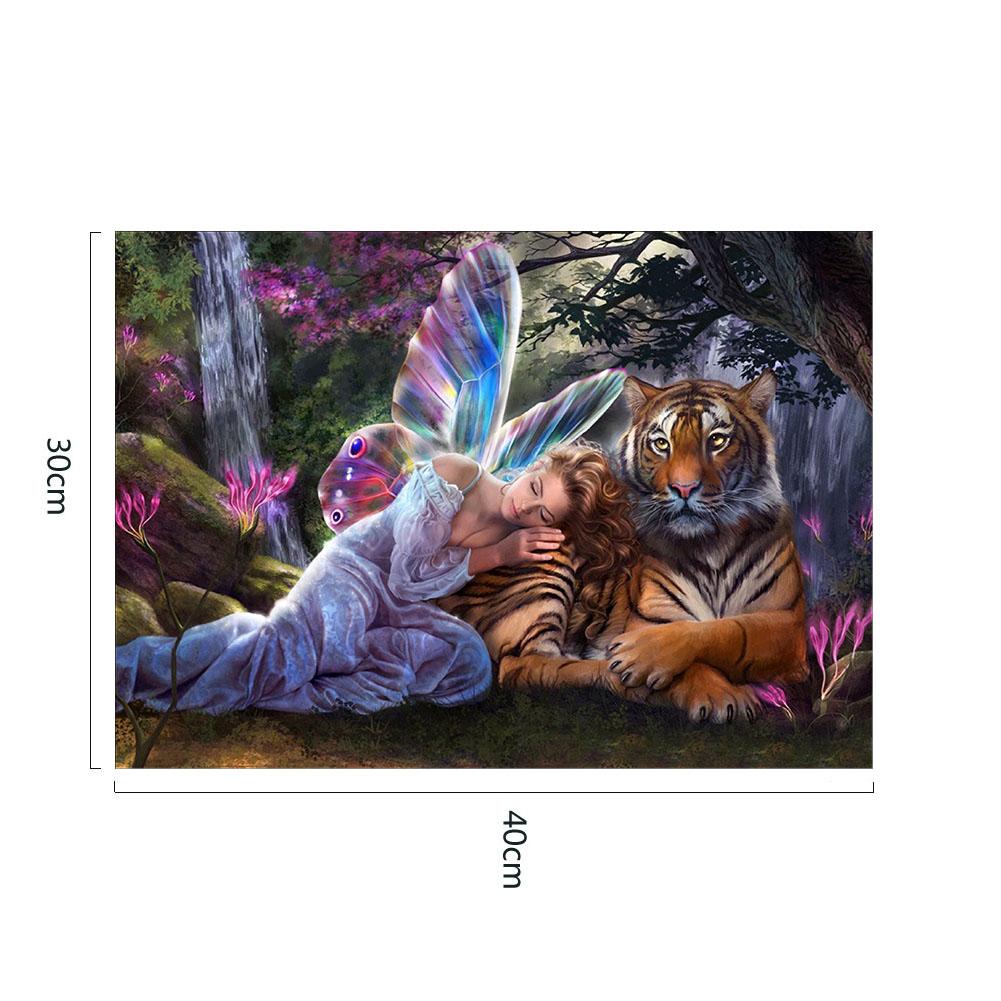 1 X Angel and Tiger Diamond Painting(Rhinestone Need to be Pasted)