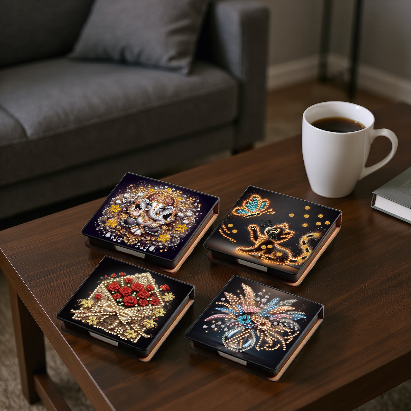 Animals Flowers PU DIY 5D Diamond Painting Note Box 640 Blank Notepad for Office