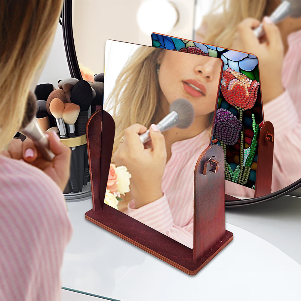 Special Shape 5D DIY Diamond Art Tabletop Decor Flower Foldong Diamond Painting Mirror Skeleton Bedroom Table Wall Decor