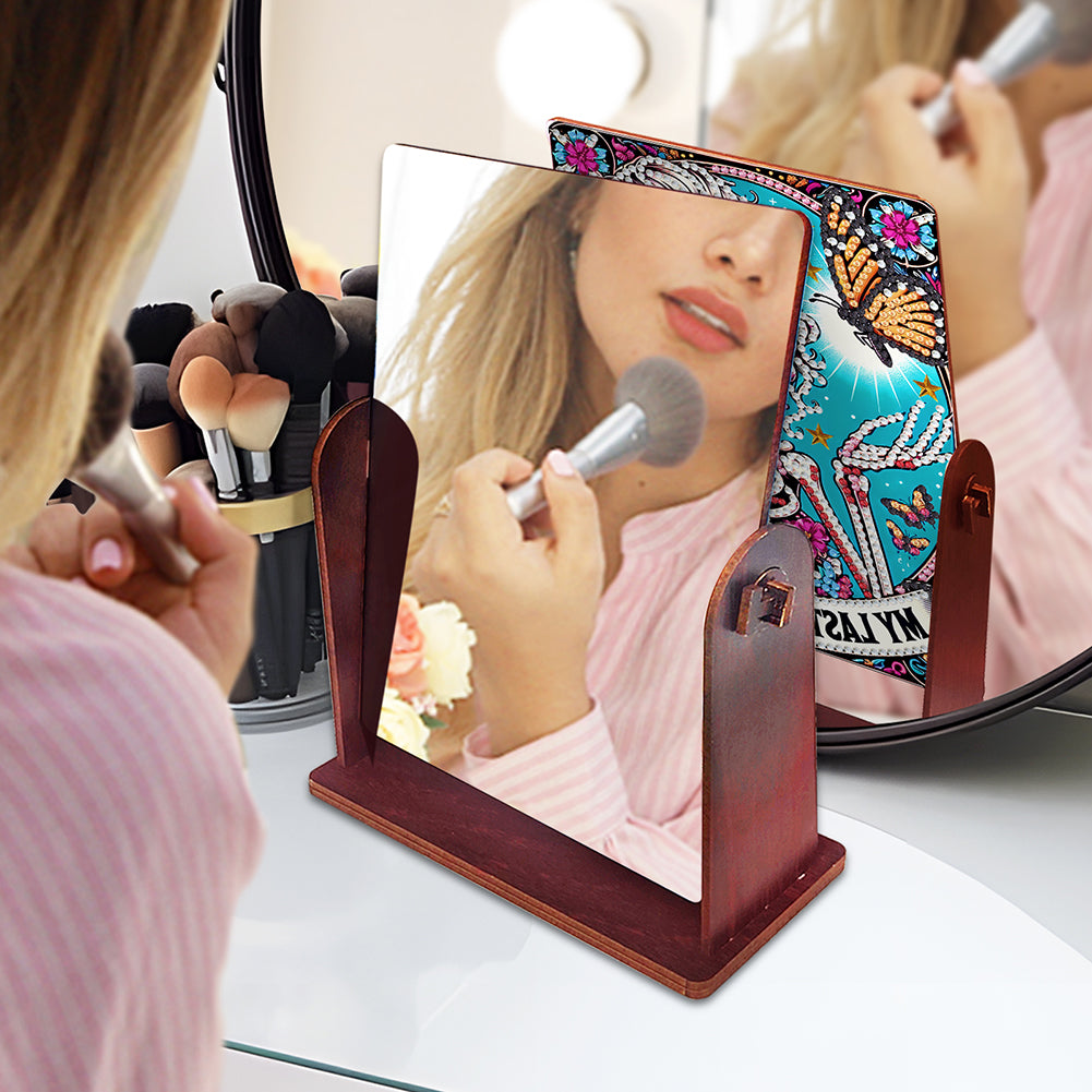 Special Shape 5D DIY Diamond Art Tabletop Decor Flower Foldong Diamond Painting Mirror Skeleton Bedroom Table Wall Decor