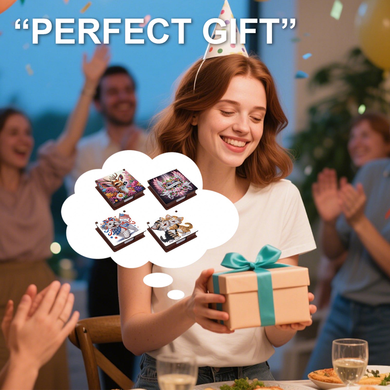 Animals Wooden DIY 5D Diamond Painting Note Box 640 Notepads for Office Home