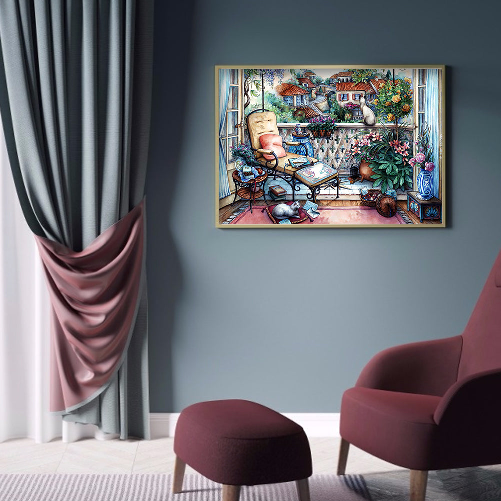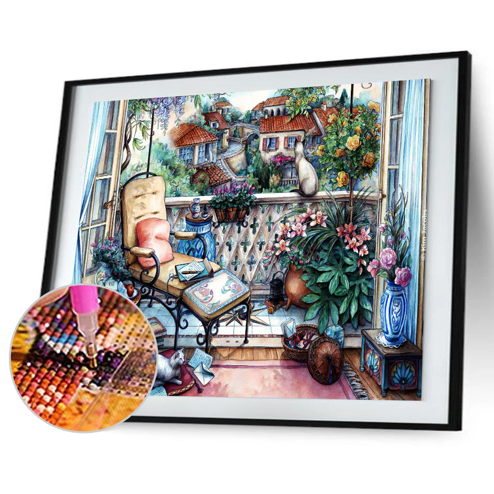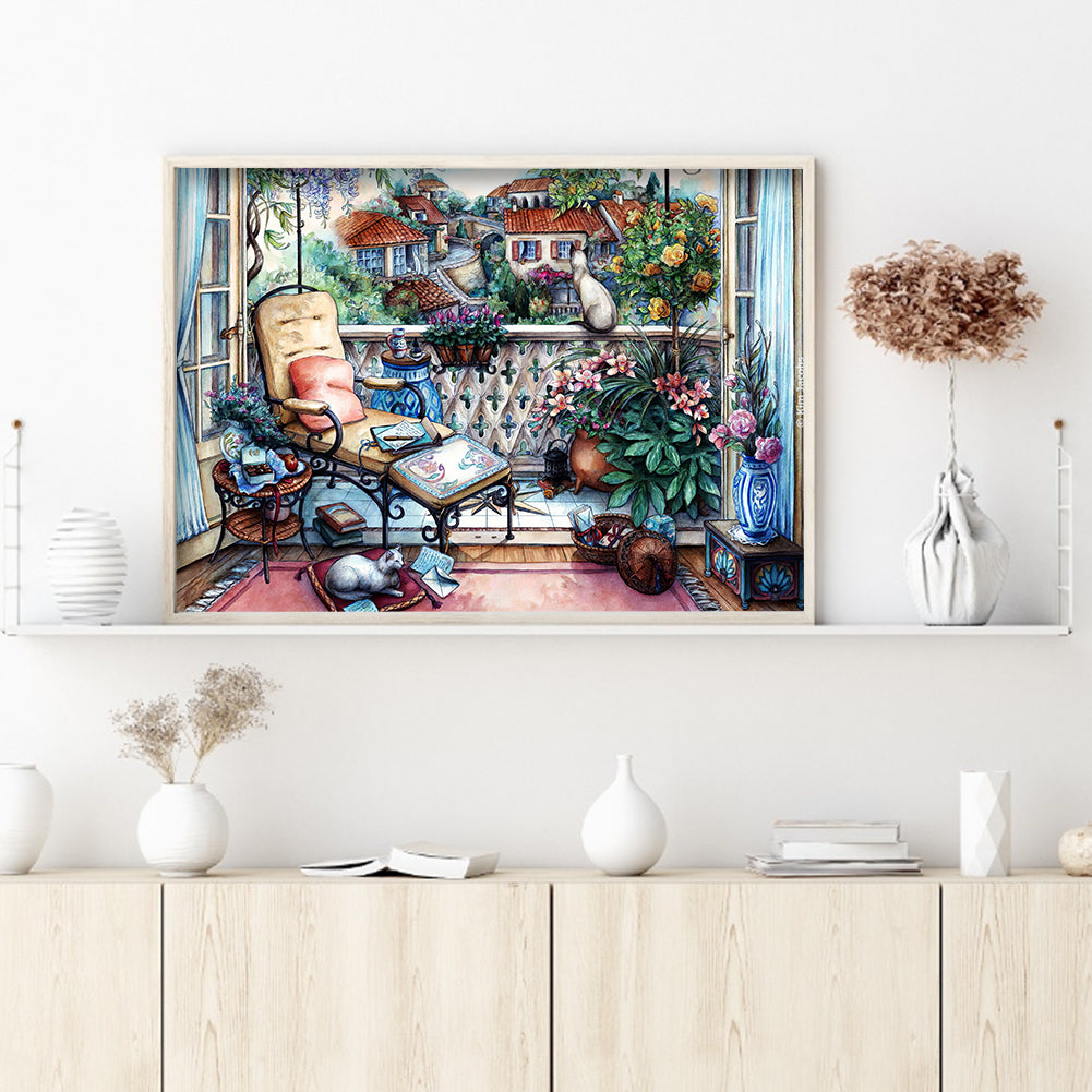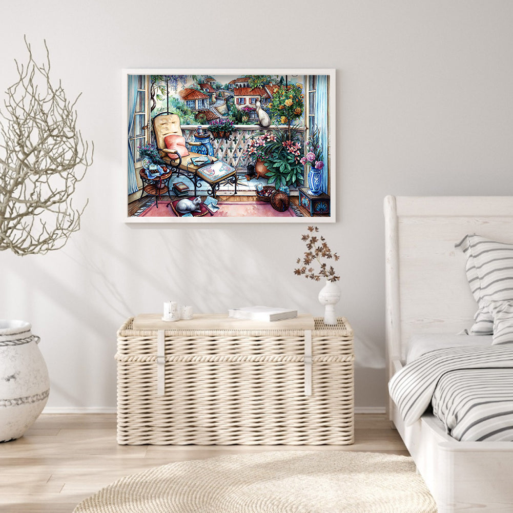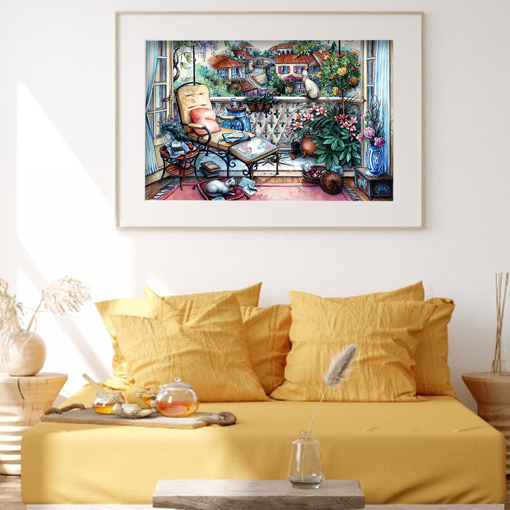 Balcony Chairs - Full Round Drill Diamond Painting 50*40CM
