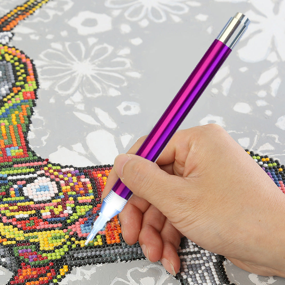 Battery Powered Lighted Point Drill Pen Diamond Painting DIY Tools (Purple)